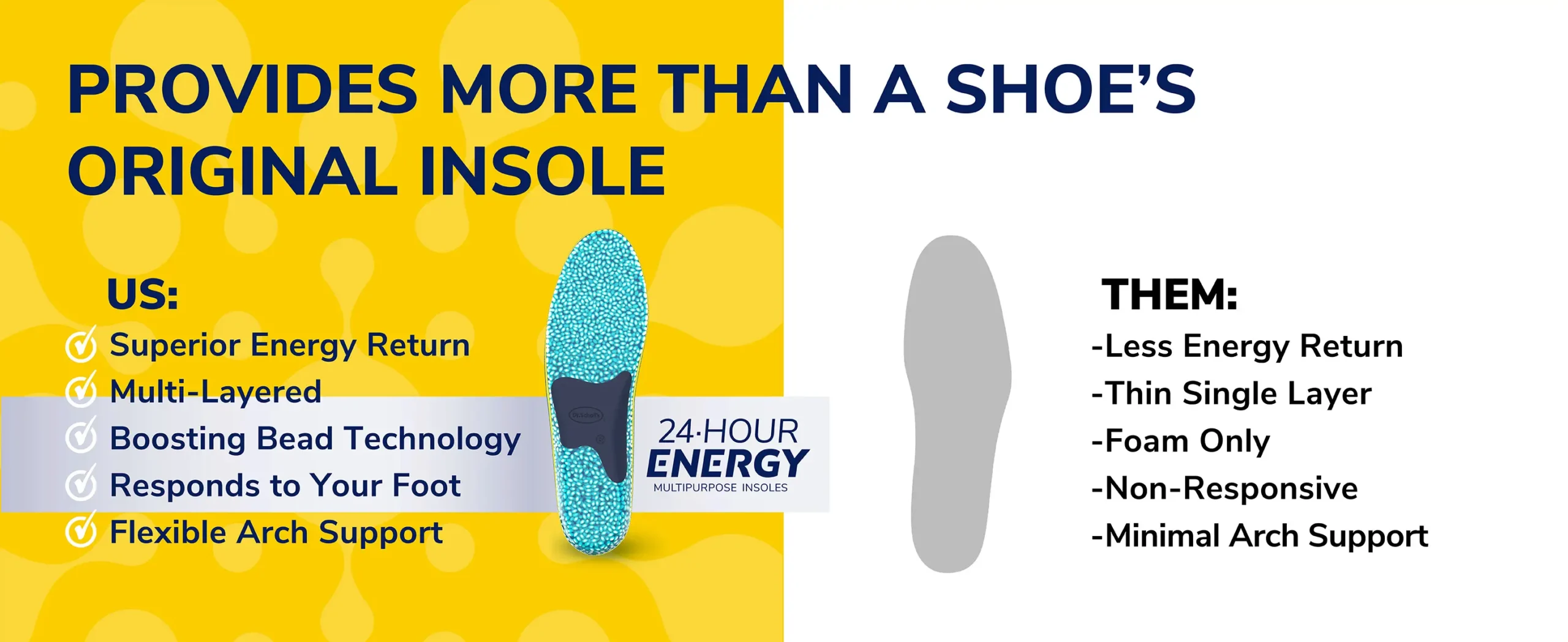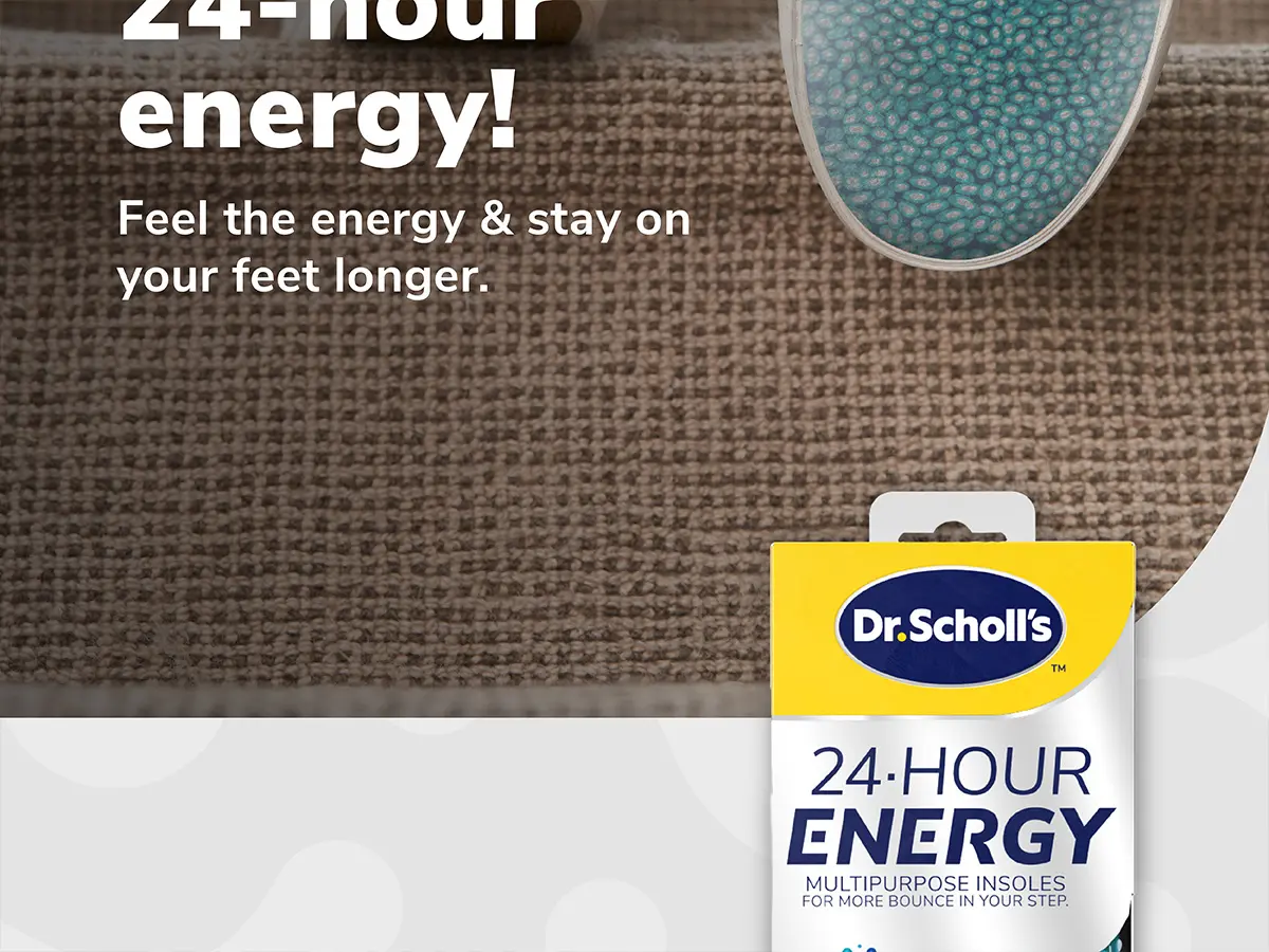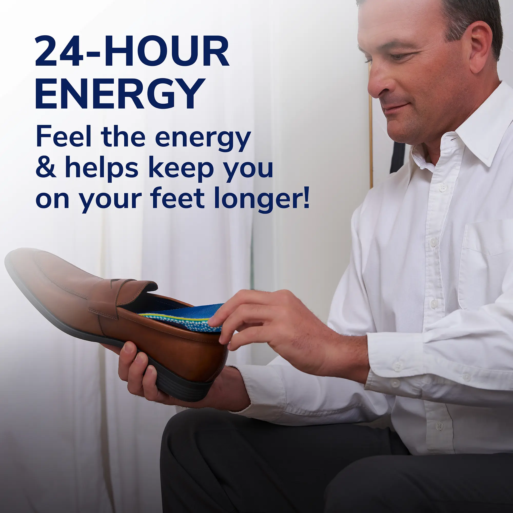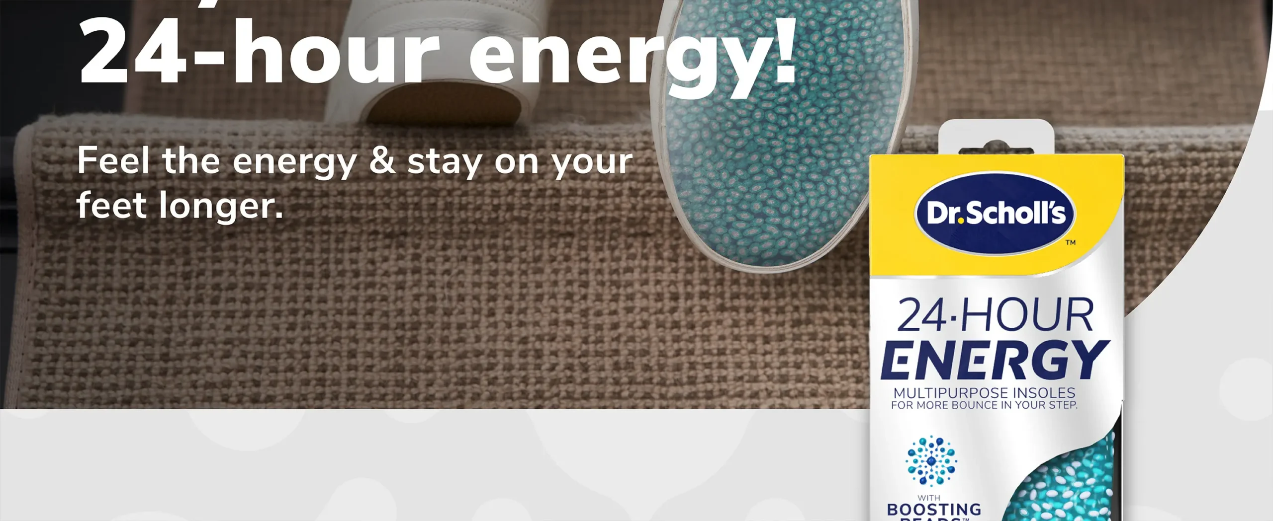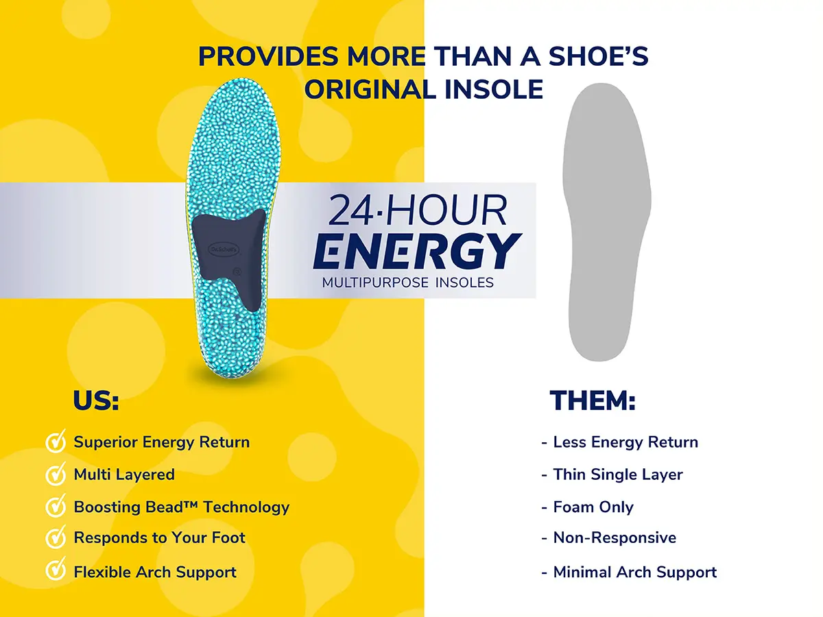 ENERGY-BOOSTING SUPPORT THAT KEEPS YOU GOING: Dr. Scholl’s 24-Hour Energy Insoles provide a clinically proven boost with every step, keeping you energised and ready to do what you love all day long