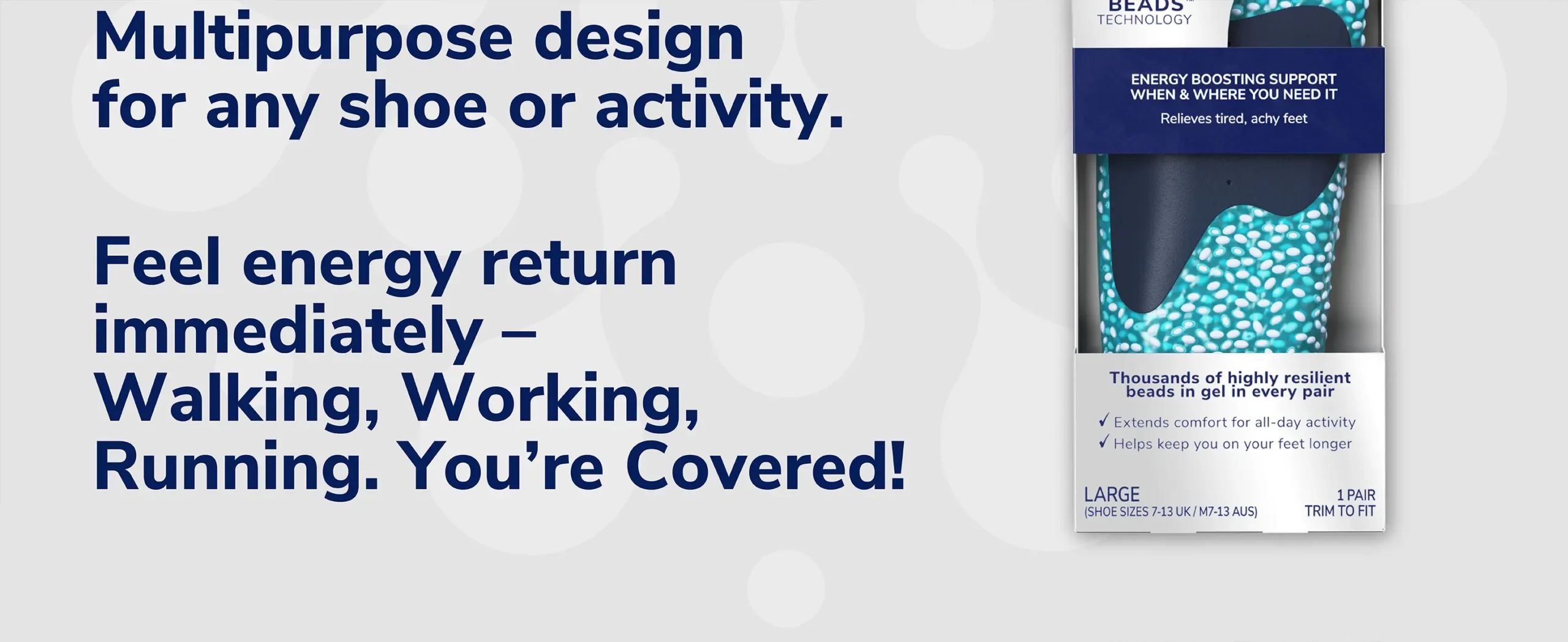 MULTIPURPOSE DESIGN FOR ANY SHOE OR ACTIVITY: Whether walking, working, or running, these versatile insoles fit any shoe, providing immediate energy return and all-day comfort for any activity