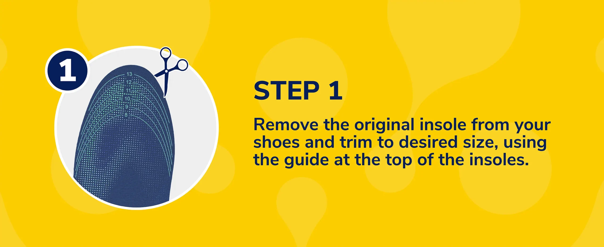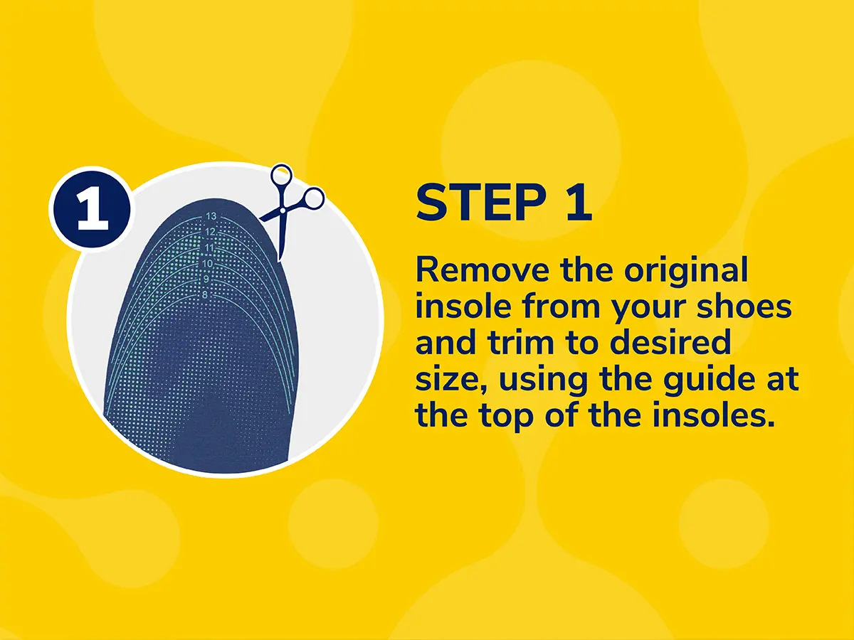 1. Trim the insole to fit your shoe using the marked lines and scissors.