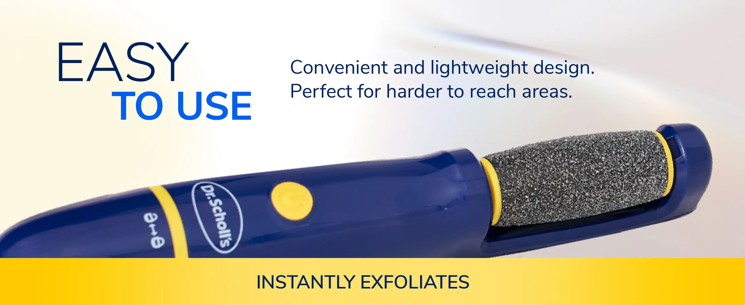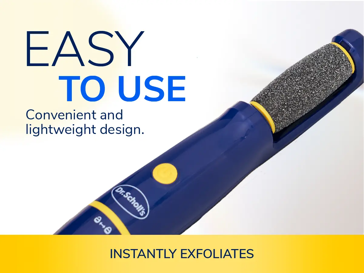 LIGHTWEIGHT AND EASY TO USE FOR DAILY CARE Designed for comfort and control, Dr. Scholl’s Callus Remover Electric Pedicure Foot File fits naturally in your hand, making regular foot care at home or on the go simple and effective