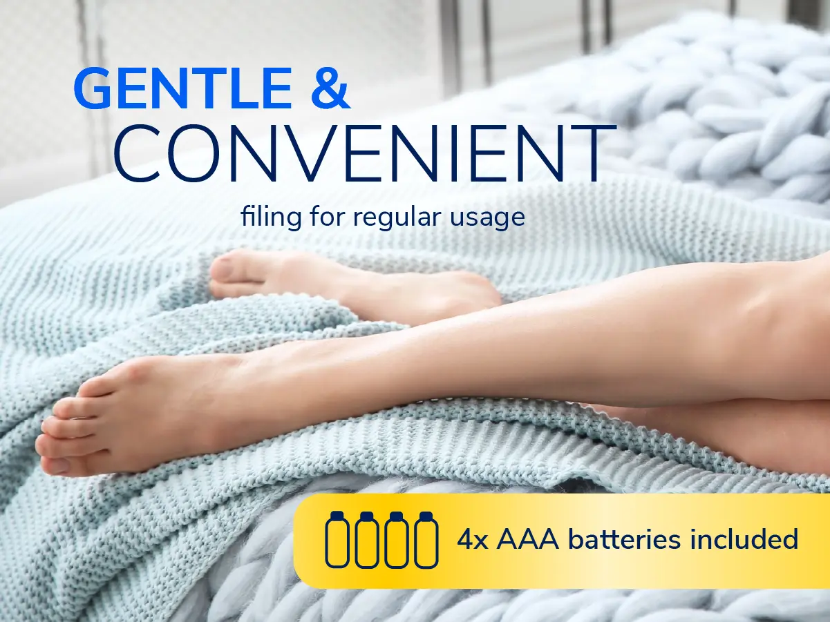 PORTABLE DESIGN WITH BATTERIES INCLUDED: This cordless feet hard skin remover includes 4x AAA batteries so it’s ready to use straight from the box. Compact enough for travel and easy to store in a drawer or overnight bag