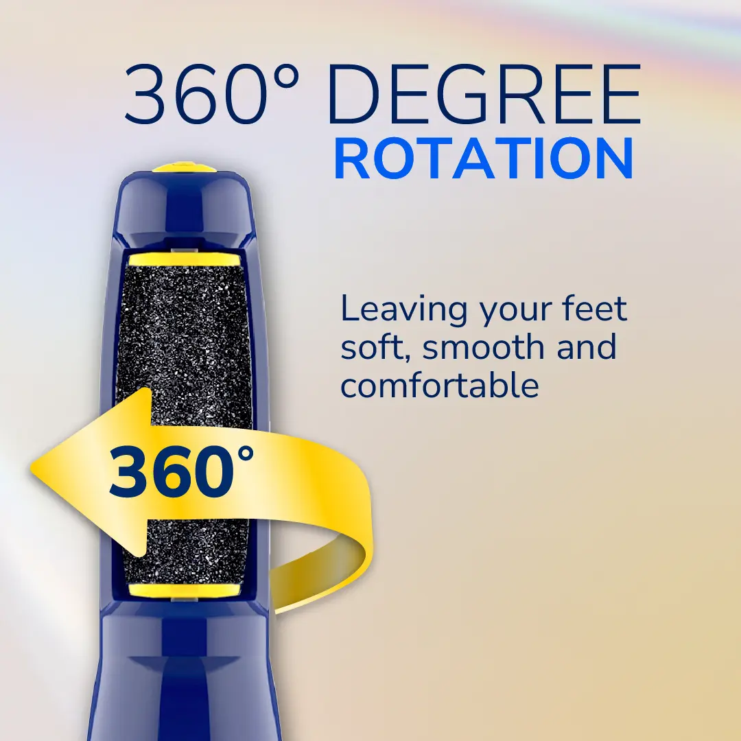 ROTATING HEAD ACCESSES HARDER TO REACH AREAS The 360 degree spinning head glides easily across the foot to exfoliate with minimal effort, making it simple to smooth heels, soles and toes without missing tricky spots or applying pressure
