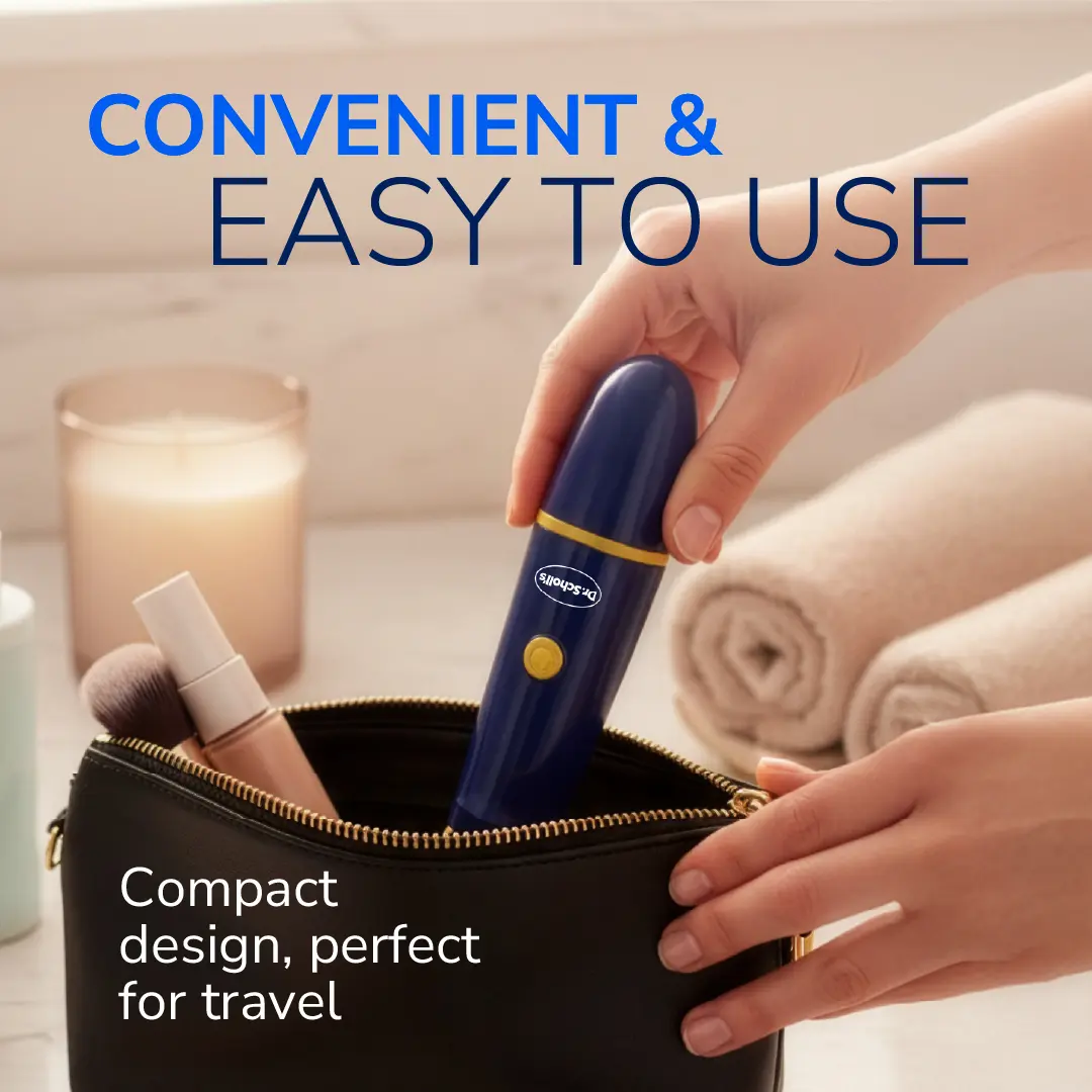Reveal smoother, healthier-looking feet in seconds with the Dr. Scholl’s Callus Remover Electric Pedicure Foot File. This cordless pedicure tool gently exfoliates and removes hard skin and calluses, delivering visible results after just one use. The 360 degree rotating head effortlessly accesses harder to reach areas like heels and toes, helping you smooth rough patches with minimal effort. Lightweight and comfortable to hold, it’s ideal for regular foot care at home or quick maintenance on the go. Used consistently, it helps reduce hard skin build-up and prevent painful cracks, especially when paired with a moisturising foot cream. Supplied with 4x AAA batteries, it’s ready to use straight out of the box. Compact and travel-friendly, it stores easily in a drawer, bag or suitcase. Whether used as part of a regular routine or occasional care, this electric pedicure tool makes it simple to keep feet soft, smooth and cared for.
