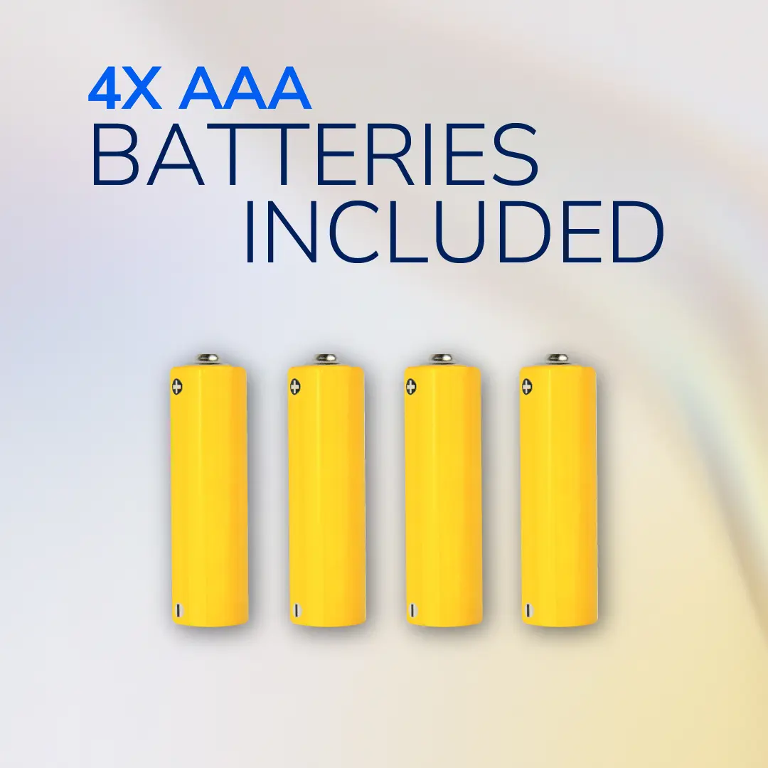 3. Insert 4 x AAA new batteries, following the battery INSTALL steps 1-3 listed above. IMPORTANT BATTERY WARNINGS: • If batteries are inserted in the wrong orientations, the device will not function. • Replace ALL batteries at the same time. Do not mix old and new batteries. Do not use rechargeable batteries. Used batteries must be recycled or disposed of correctly.