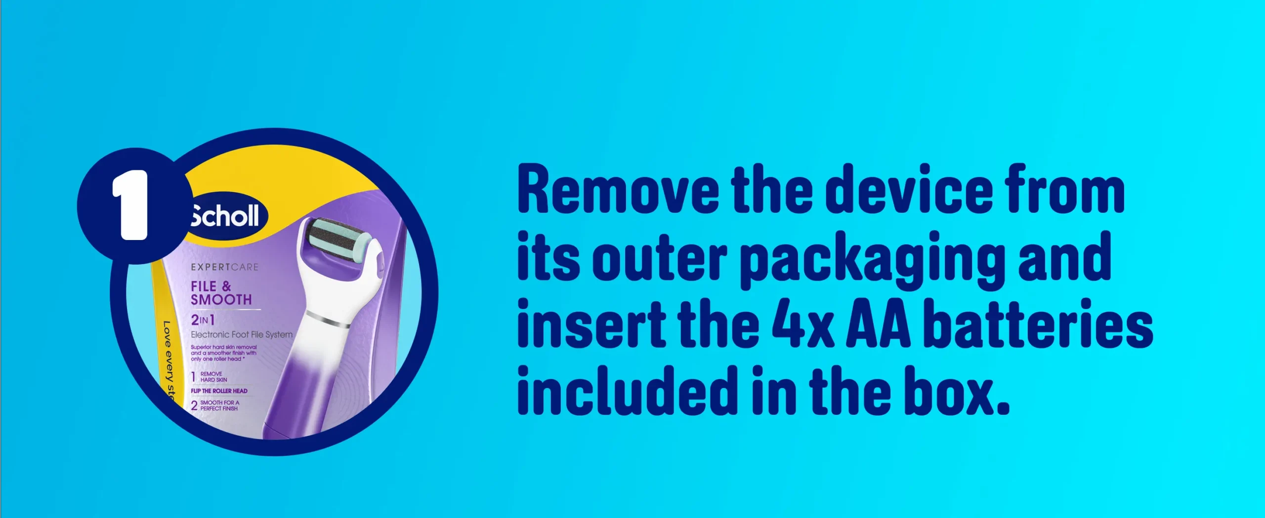 DUAL SPEED and SELF-ROTATING HEAD: The Scholl Electronic Foot File features a self-rotating head with coarse and buffer settings which effectively remove dead and dry skin from your feet, completely pain-free Choose your desired speed setting and step out confidently this summer with Scholl. Includes 4xAA batteries.