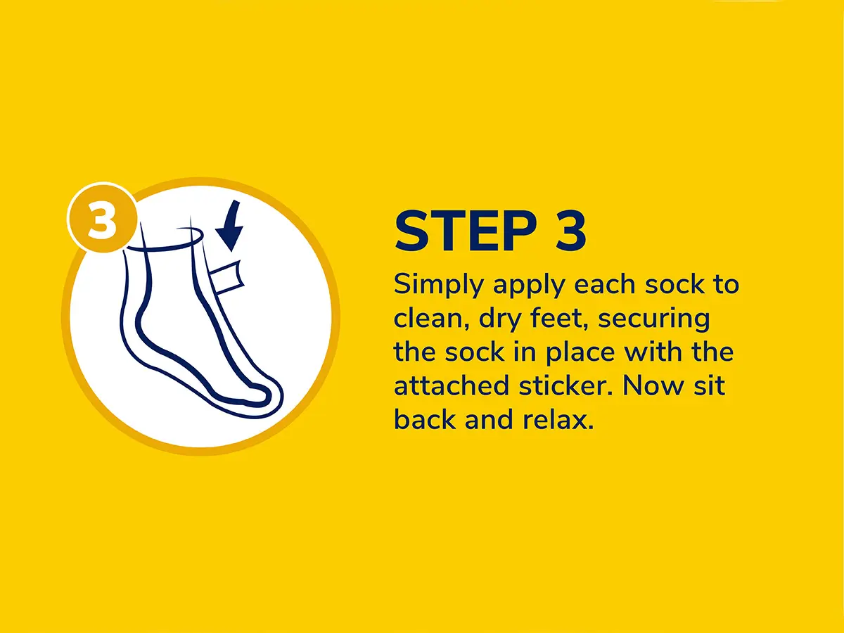 Keep out of the reach of children. If irritation occurs stop use immediately. For external use only. Avoid contact with eyes. Do not walk around when wearing the moisturising sock as it may cause you to slip or fall over.