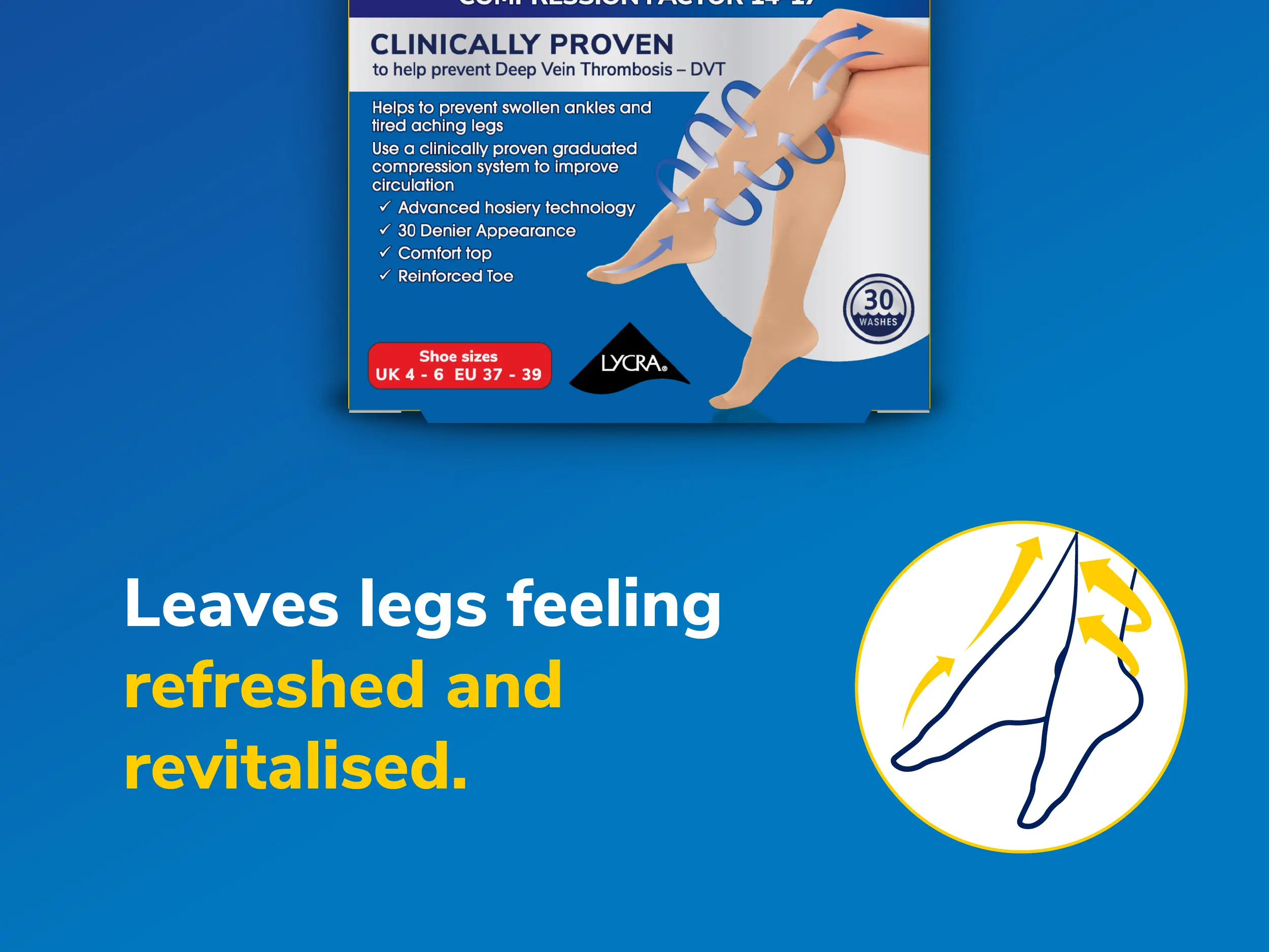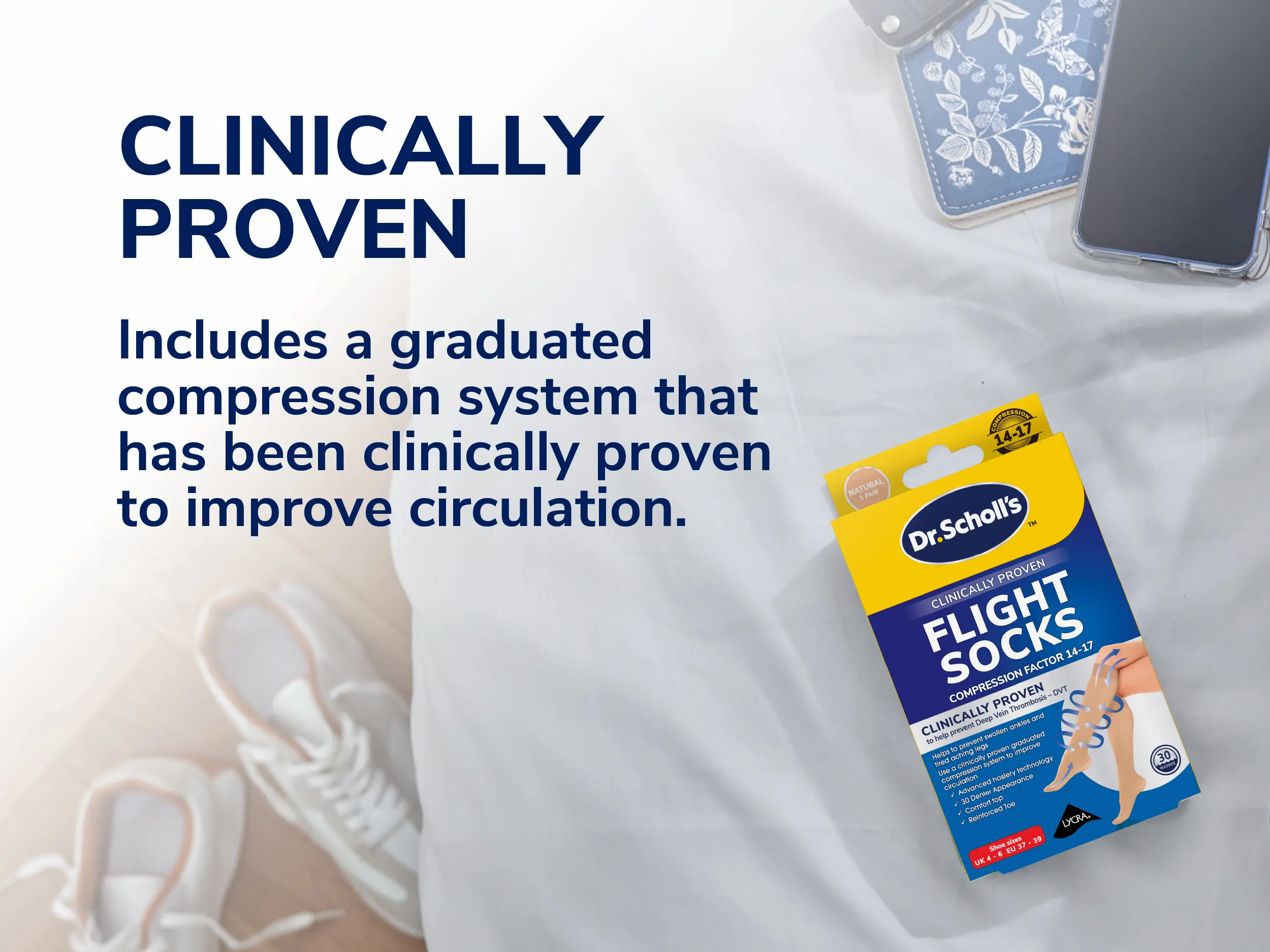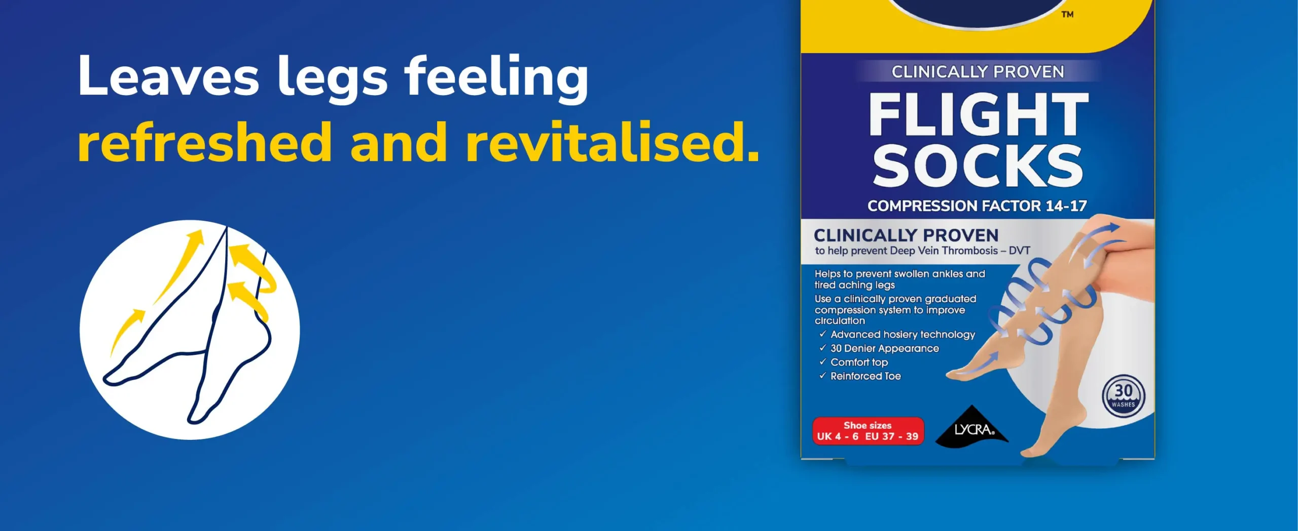 Boosts circulation and helps prevent DVT for fresher, more comfortable legs when flying.