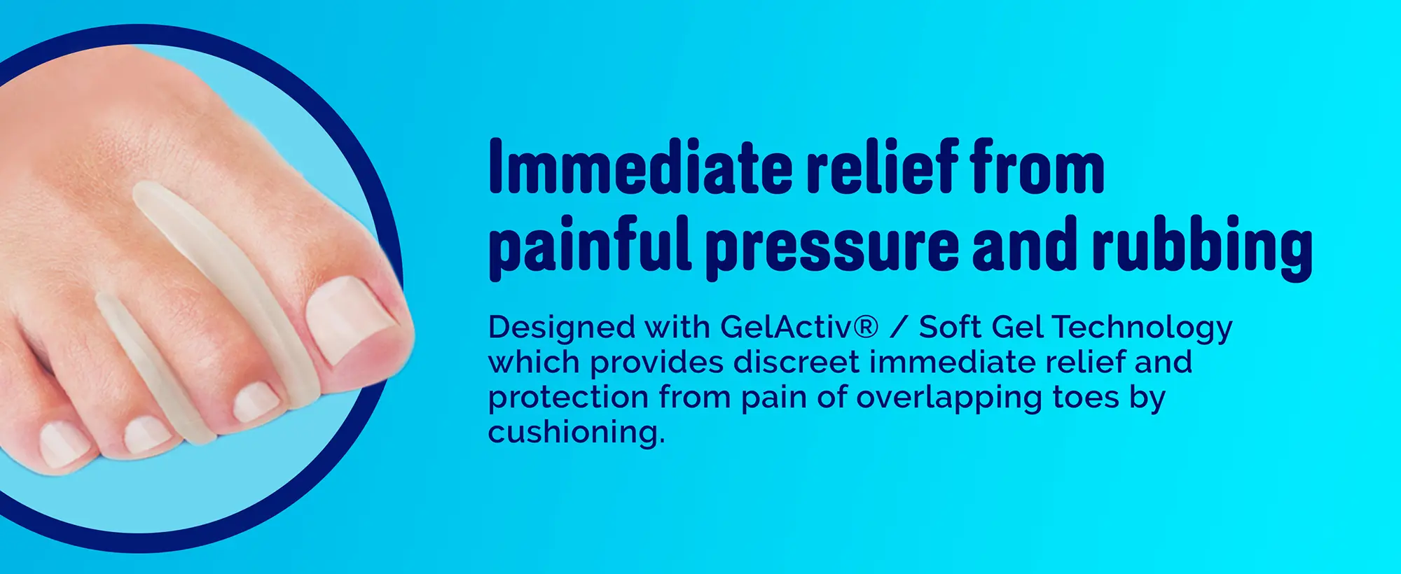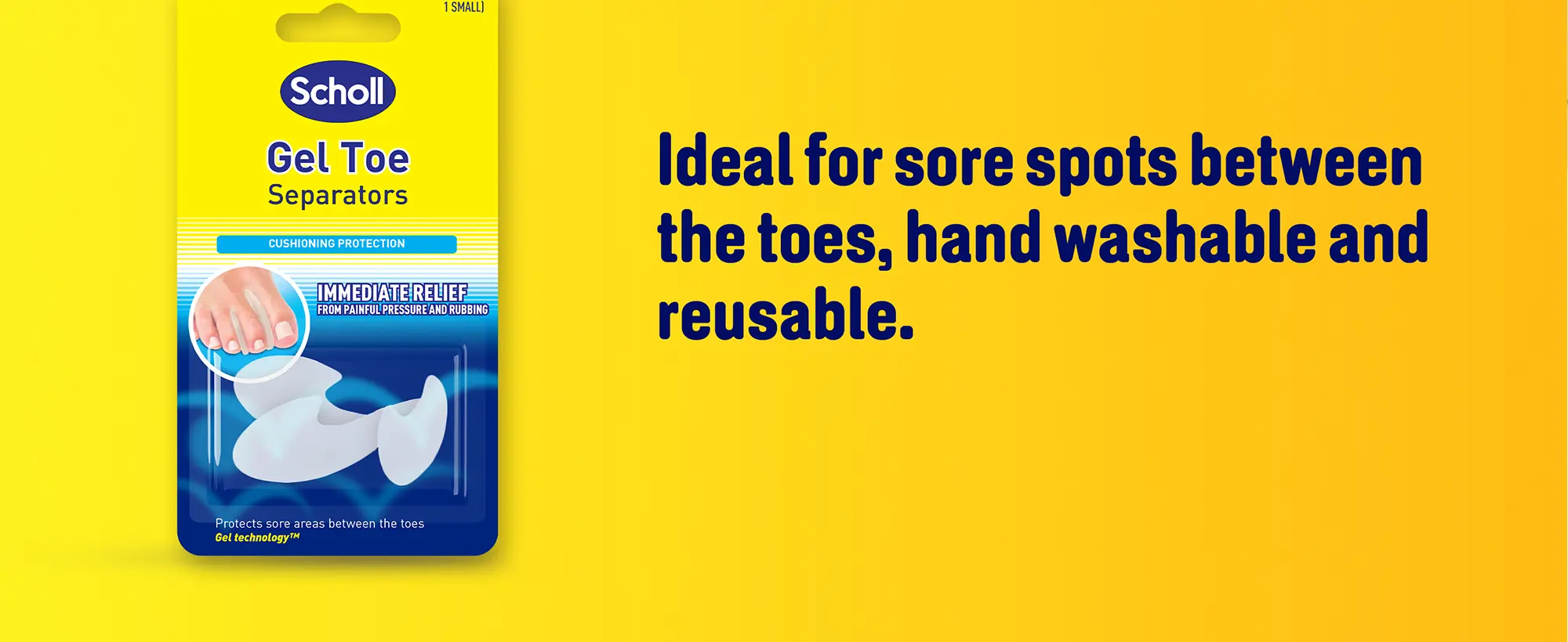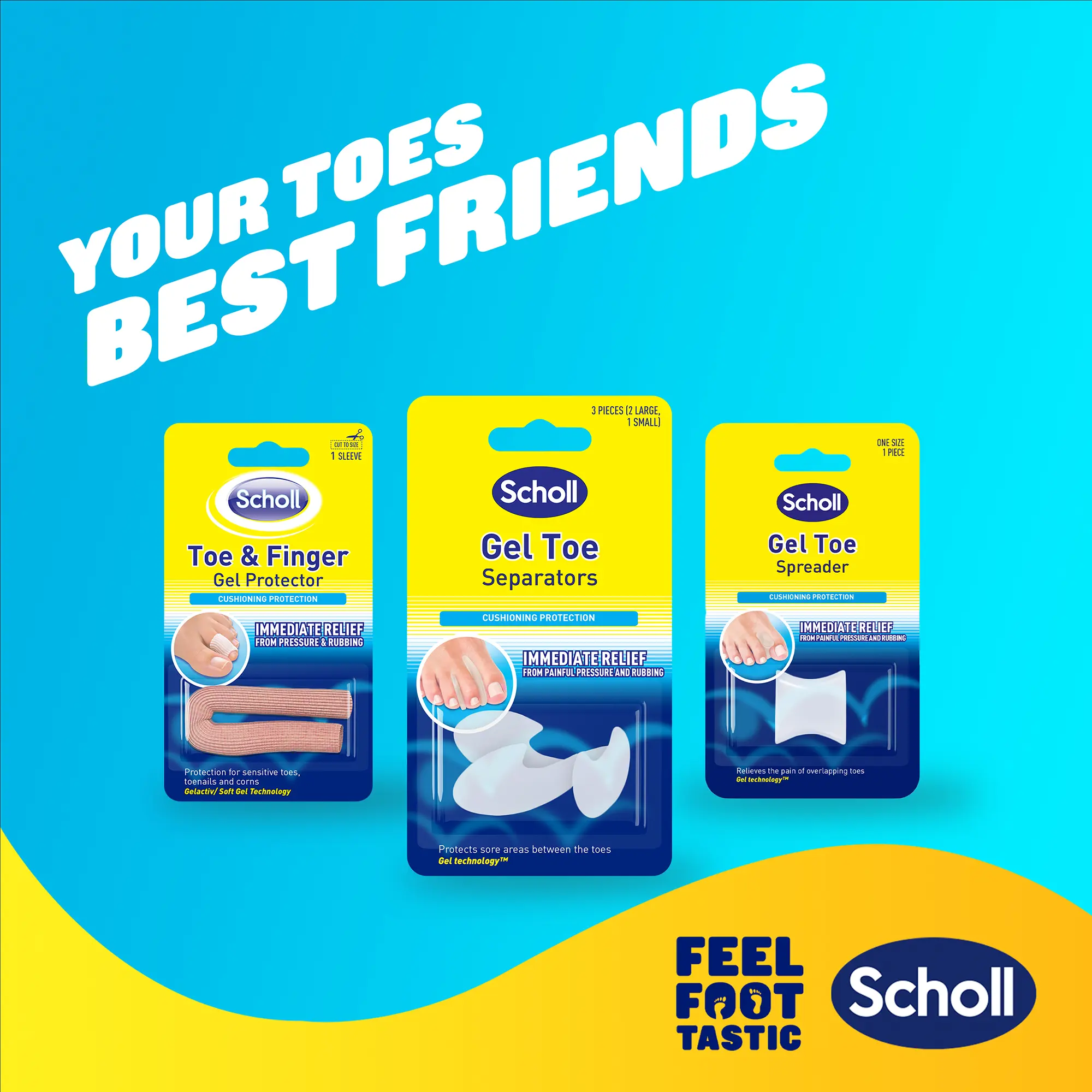 IMMEDIATE PAIN RELIEF: Scholl Gel Toe Separators provide instant relief from rubbing and soreness between the toes, reducing discomfort caused by friction and pressure.