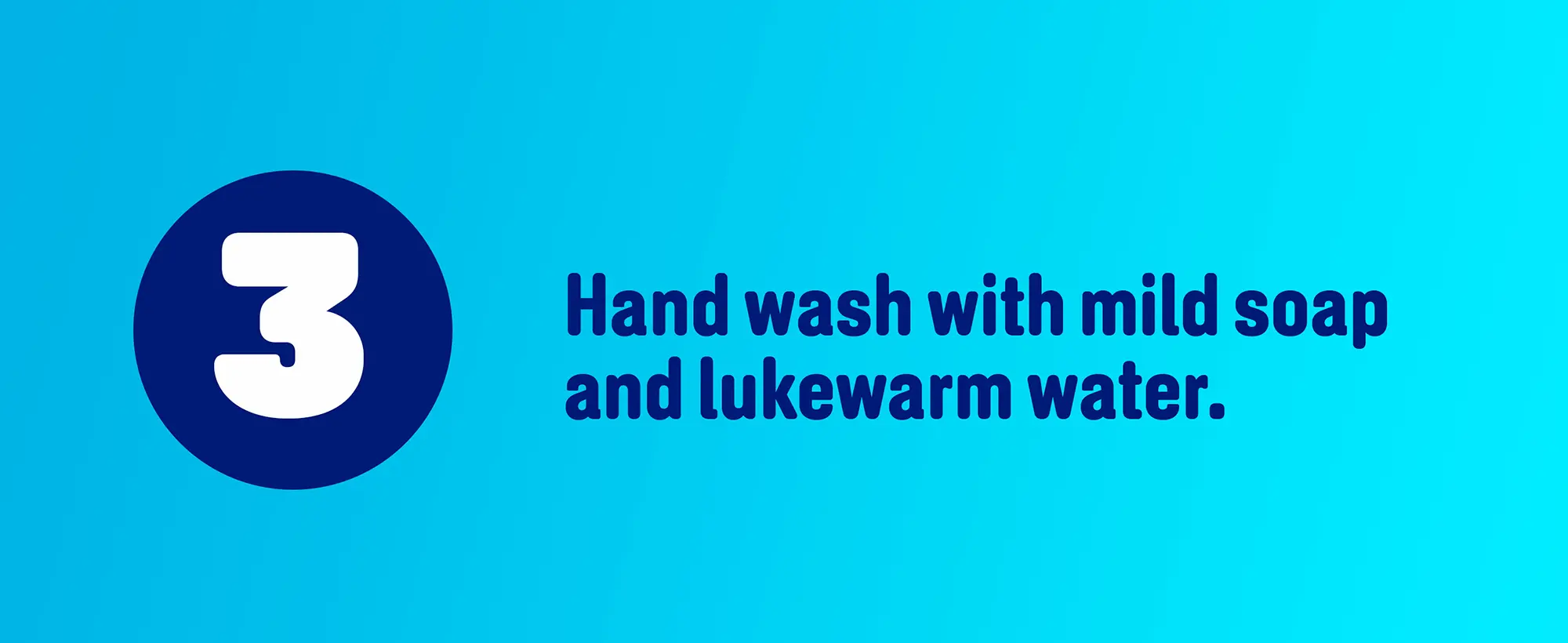 Washing Instructions: Hand wash with mild soap and lukewarm water. Rinse thoroughly then leave to dry naturally.