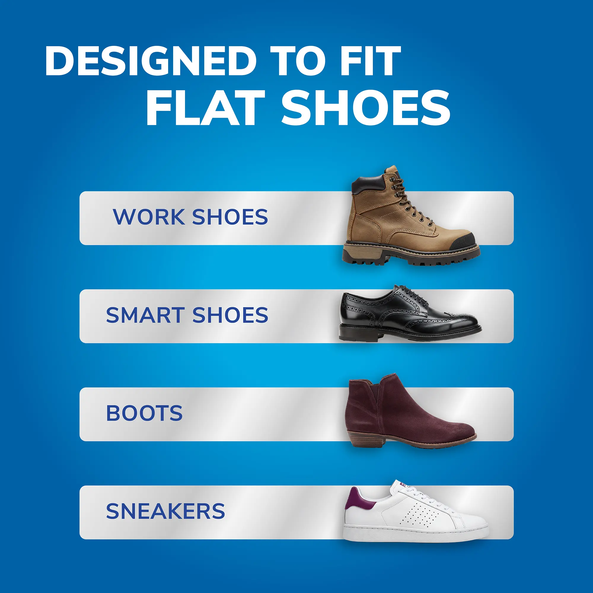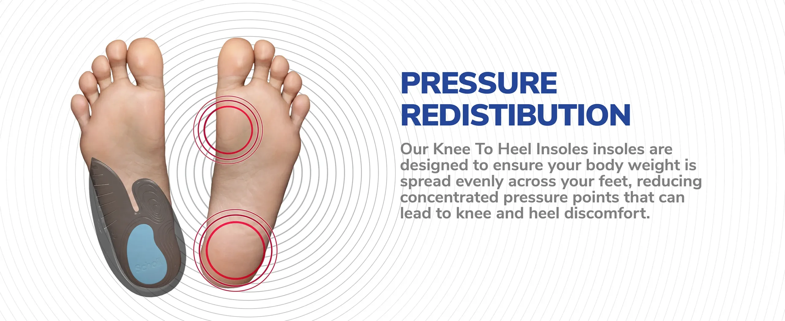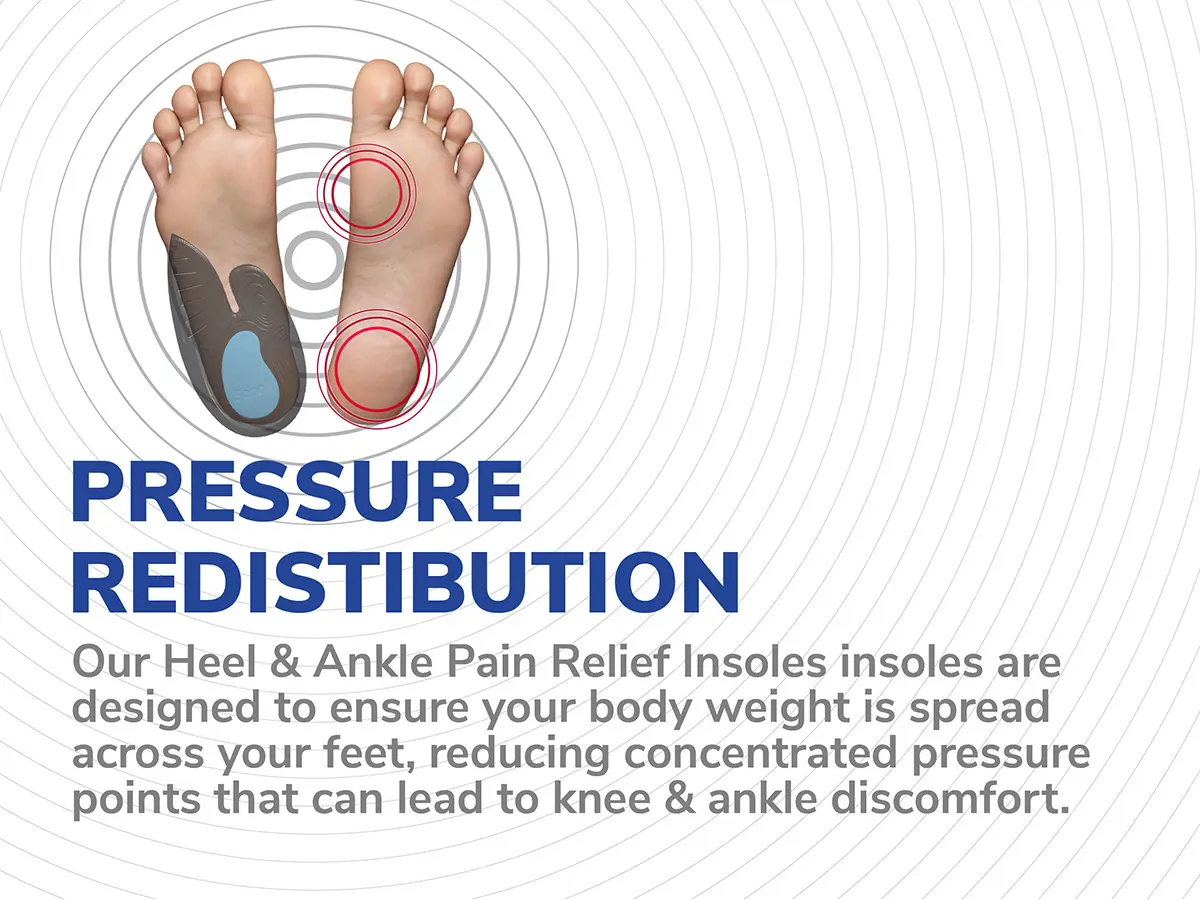 EVEN PRESSURE REDISTRIBUTION: Our insoles are designed to ensure body weight is spread evenly across your feet.