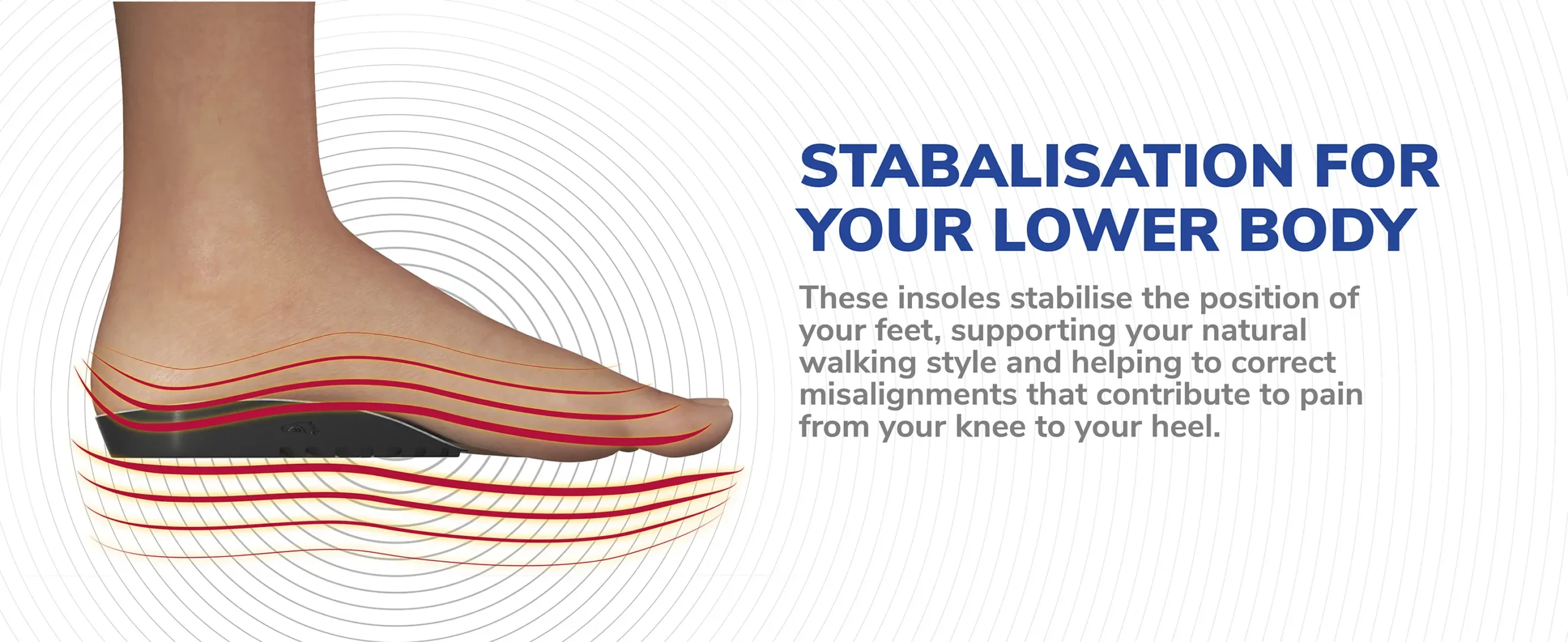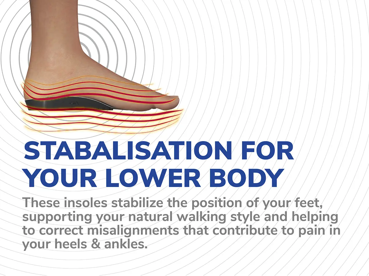 FOOT STABILISATION: Our shoe inserts stabilise the position of your feet in order to support your natural walking style.
