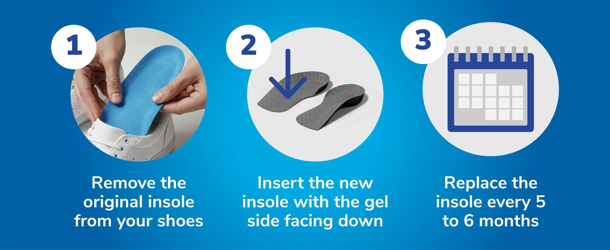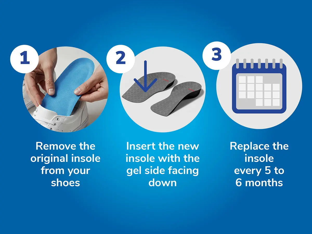 3. Replace the insoles every 6 months or sooner if showing signs of wear.