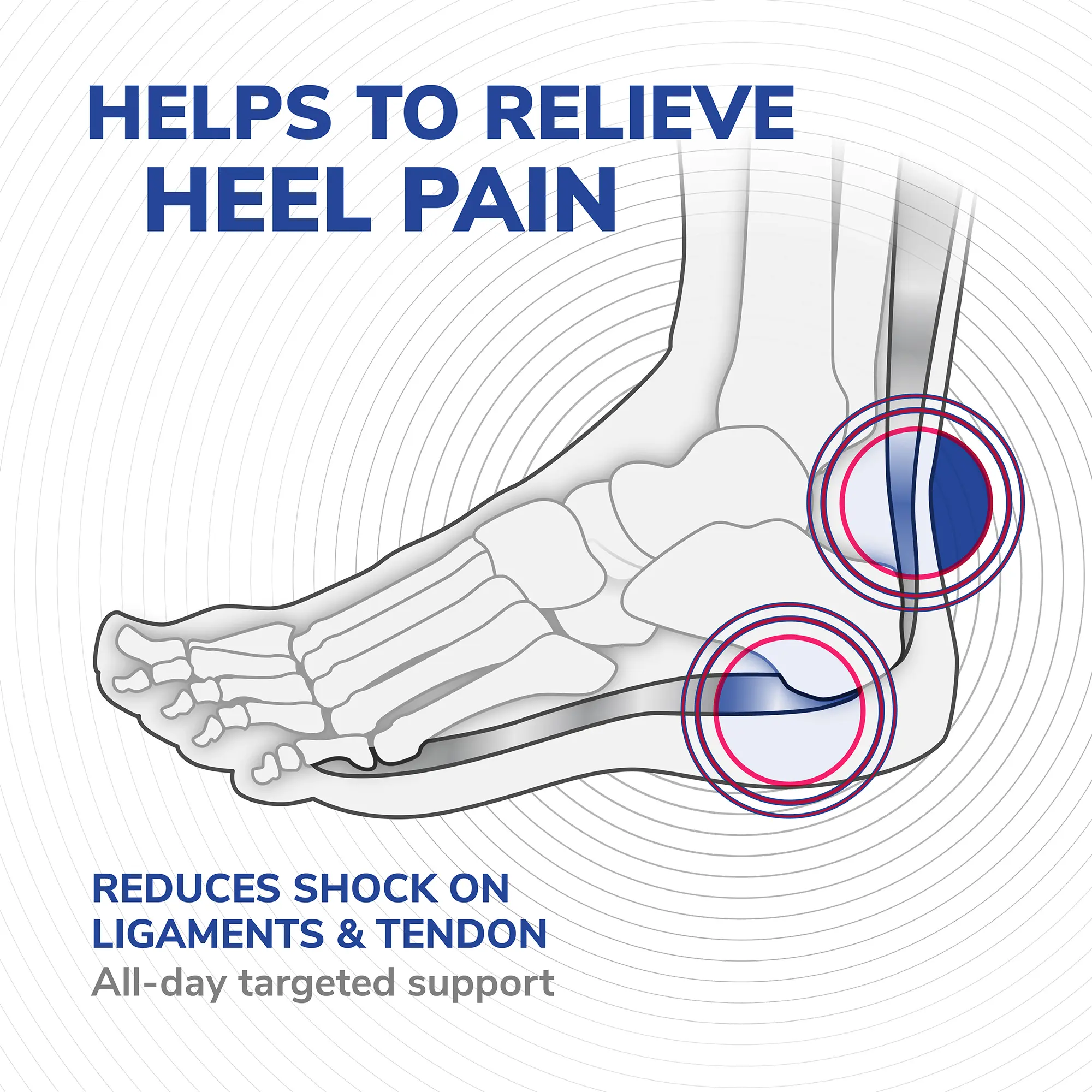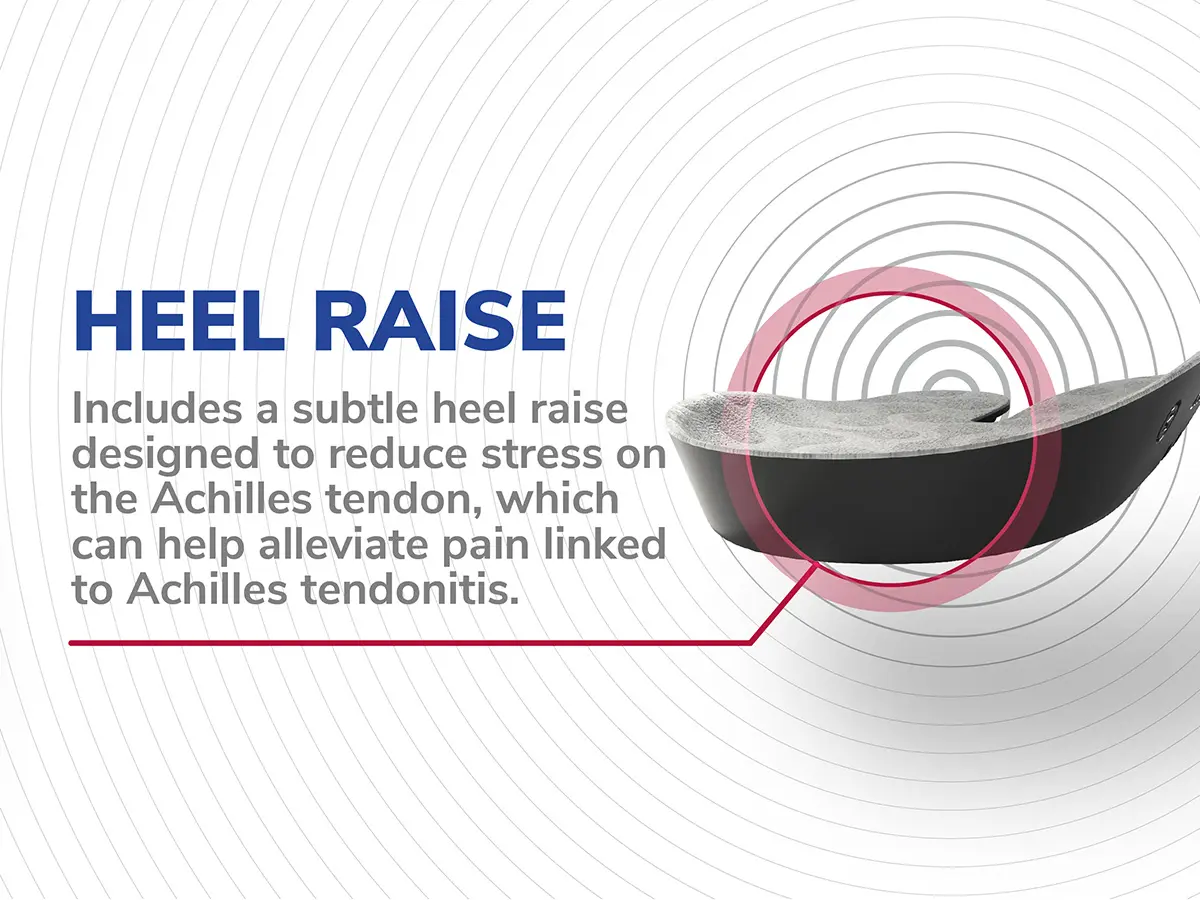 Relieves heel pain by absorbing shock and improving stability for all-day comfort.