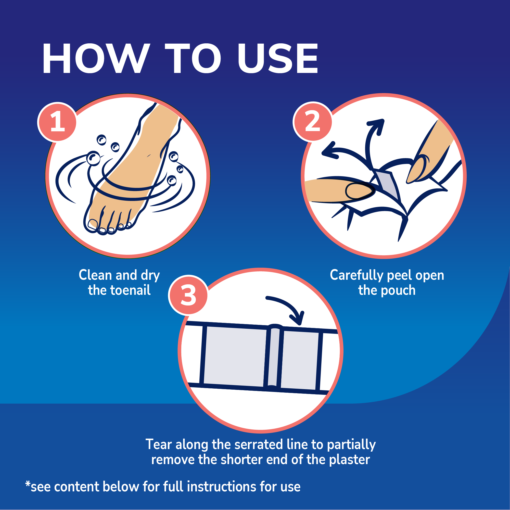 Excessive force during application may cause toenail pain or discomfort. The plaster is not waterproof. The plaster should be removed before showering and swimming. If the toenail develops an infection, consult your healthcare professional.