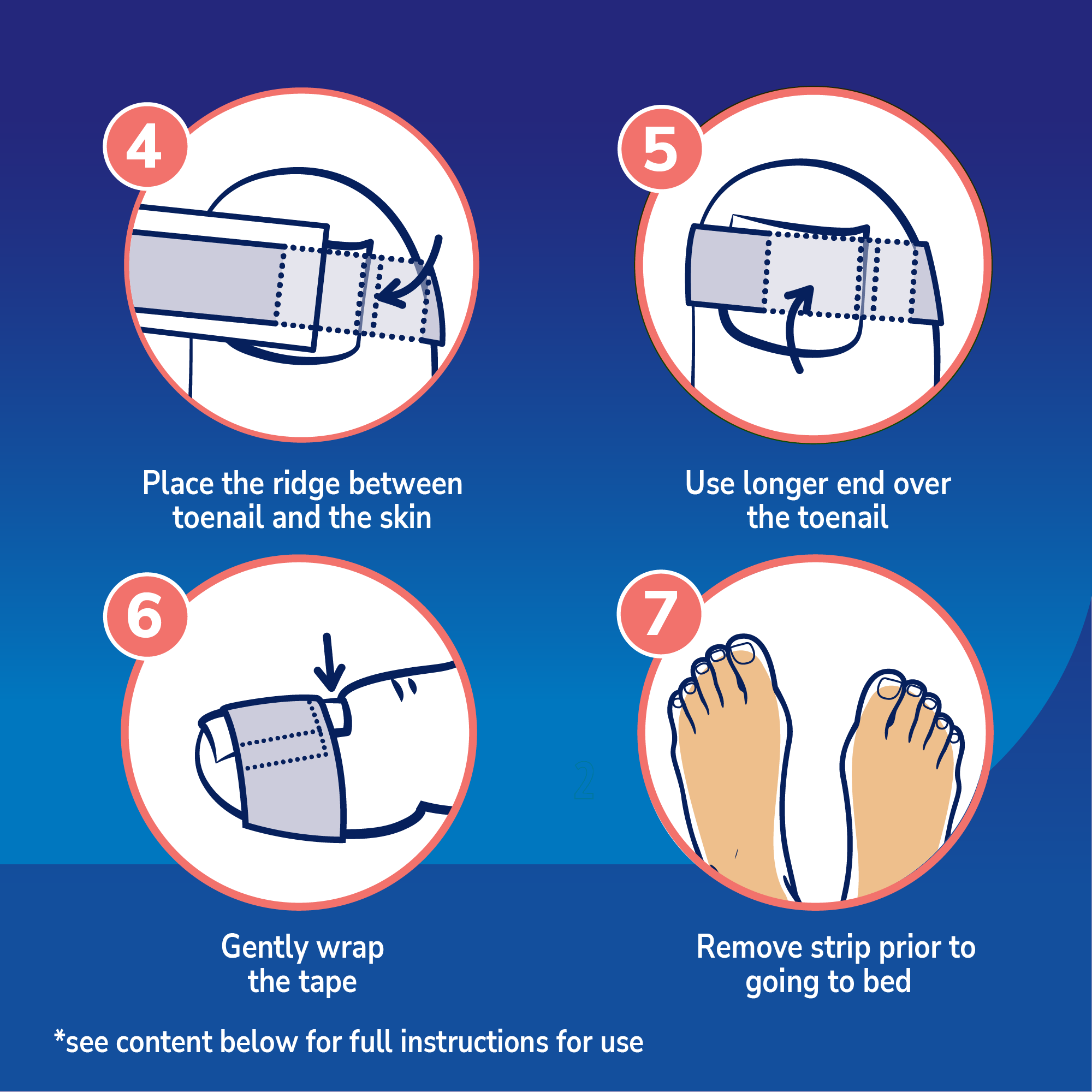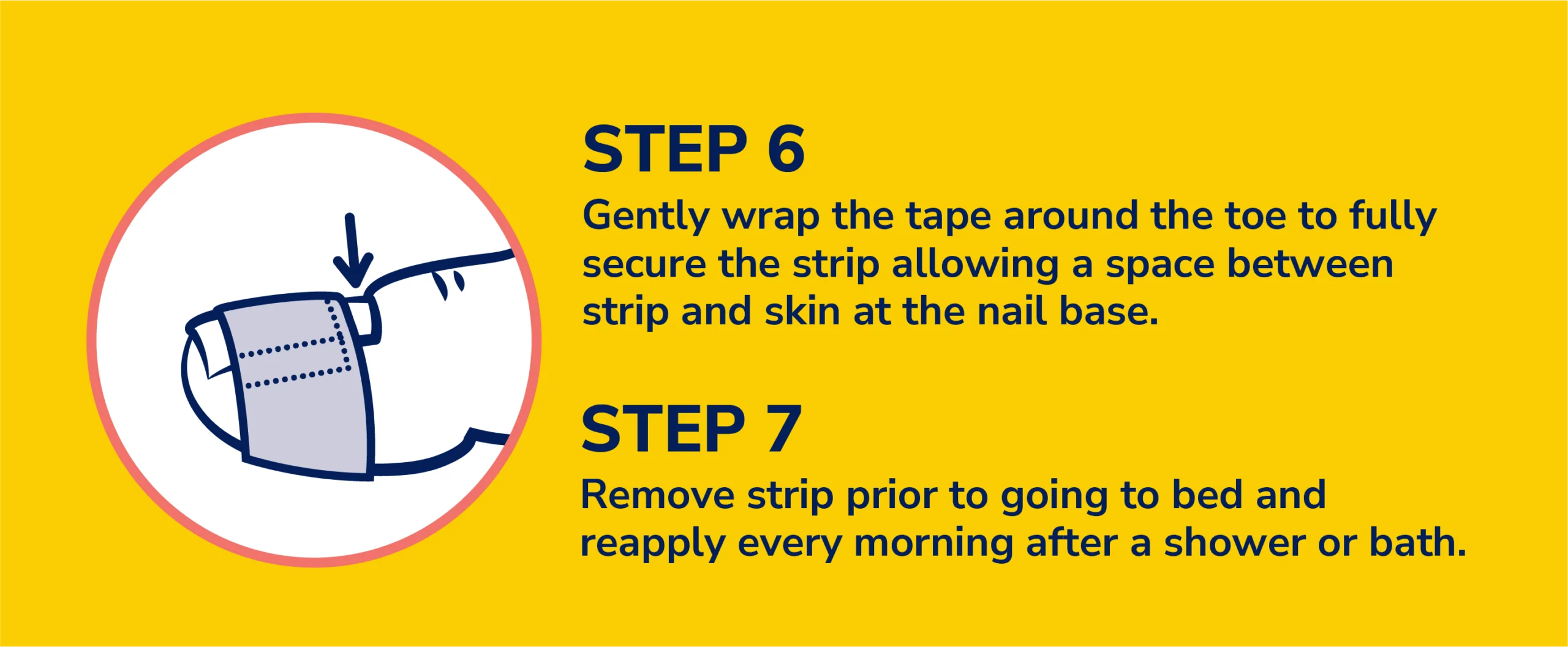 6. Gently wrap the tape around the toe to fully secure the strip, again allowing a space between the strip and the skin at the nail base.