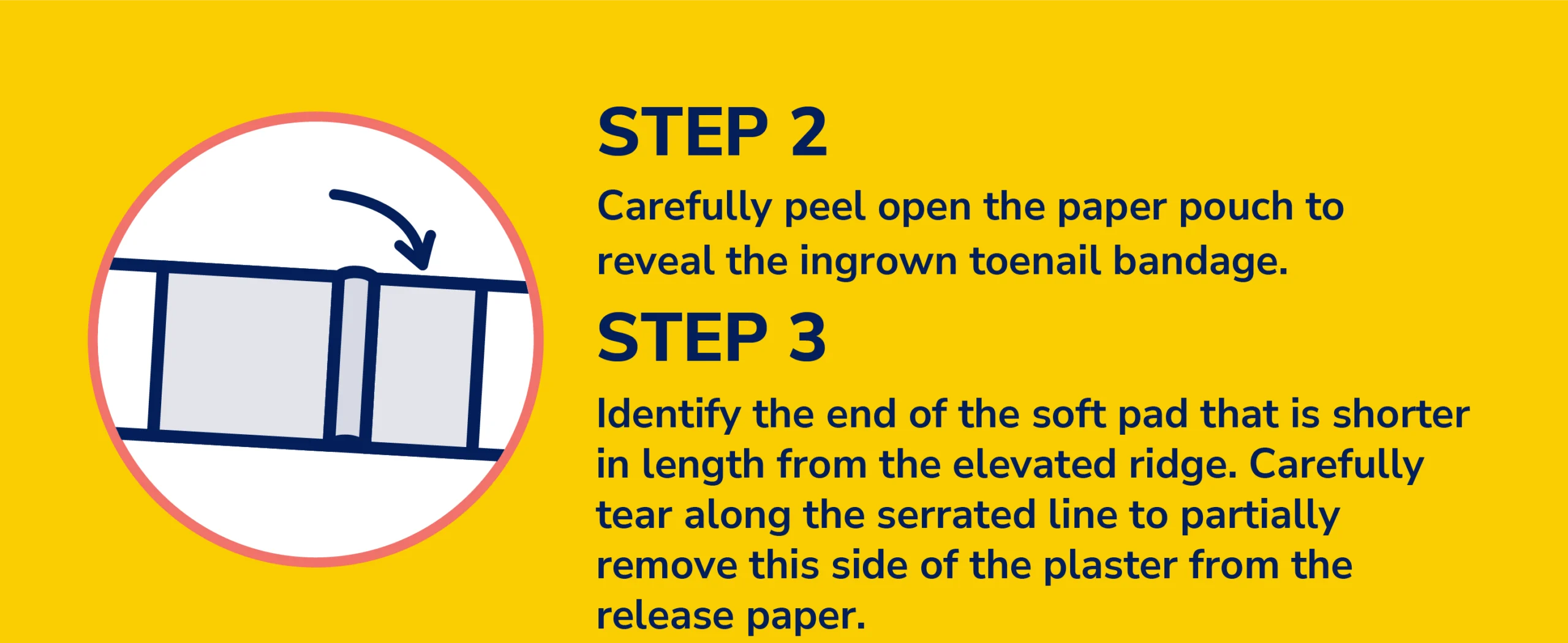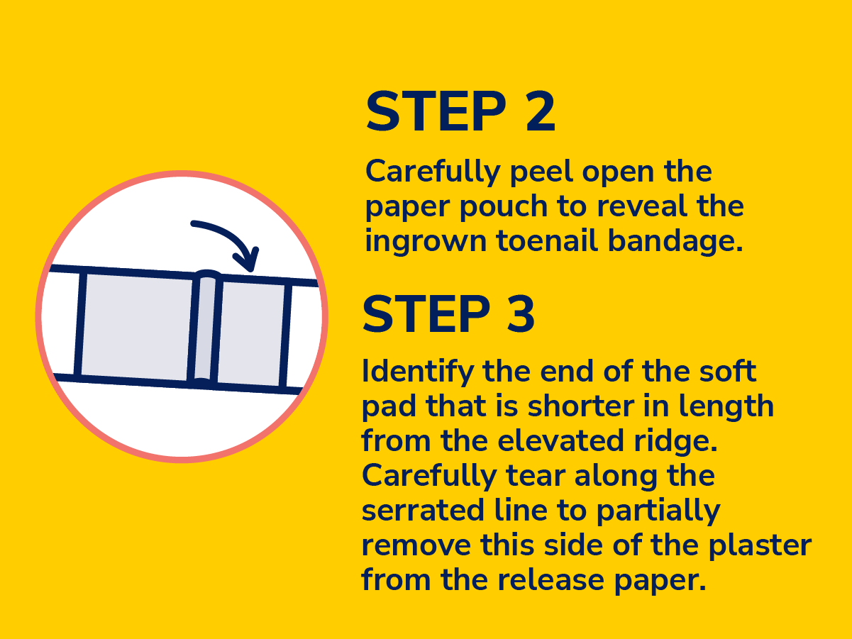 2. Carefully peel open the paper pouch to reveal the ingrown toenail bandage.