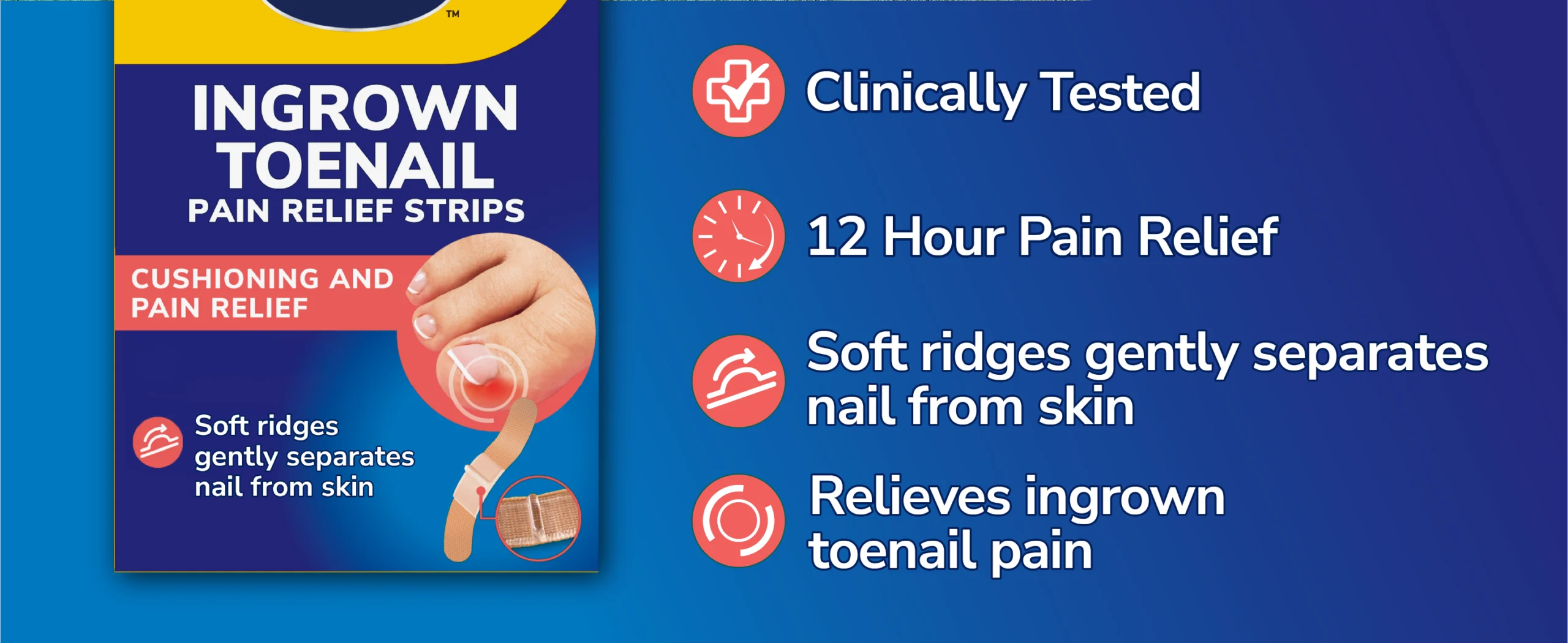 CLINICALLY TESTED 12-HOUR PAIN RELIEF: Dr. Scholl’s Ingrown Toenail Pain Relief Strips have been clinically tested and provide up to 12 hours of pain relief, helping ease the discomfort caused by ingrown toenails throughout the day