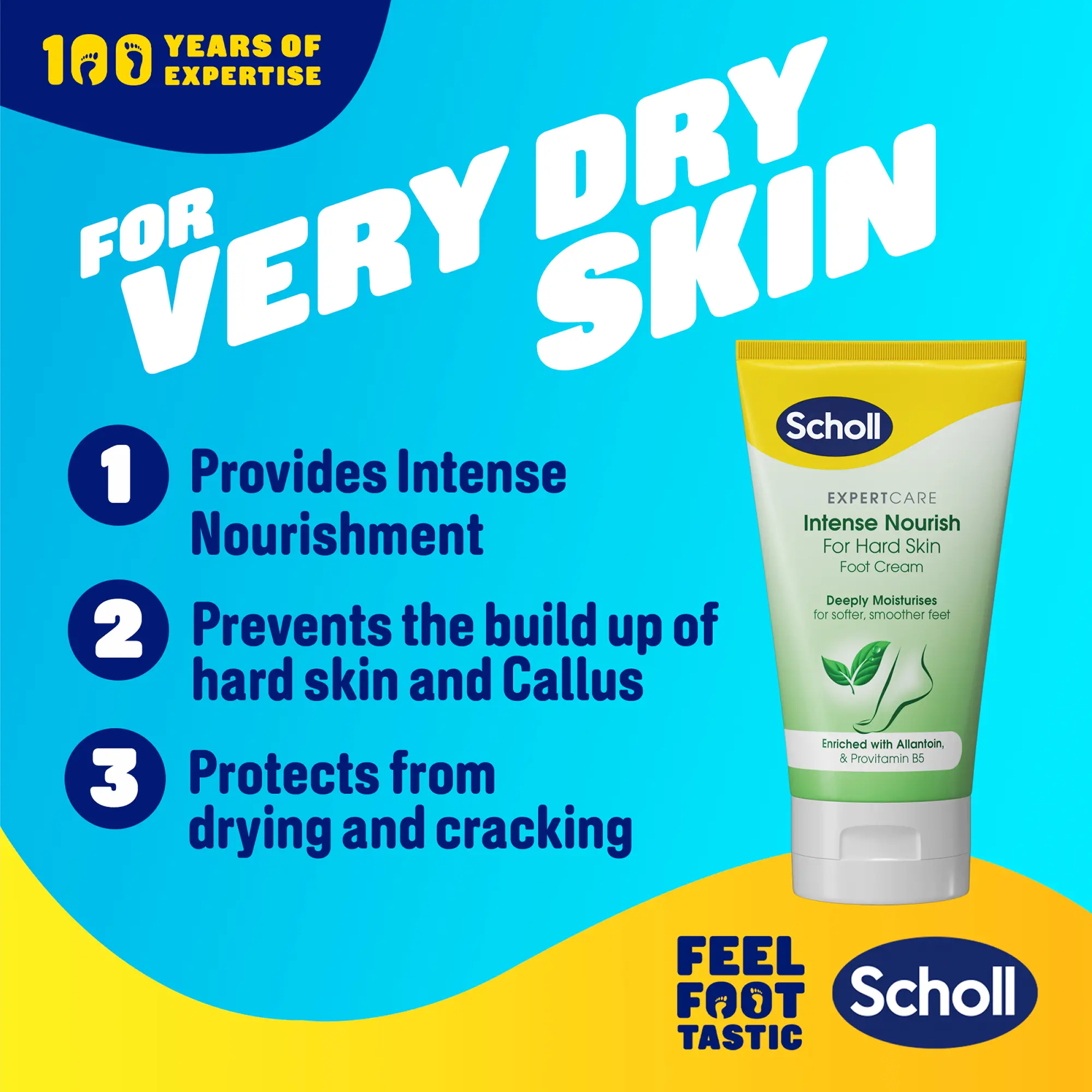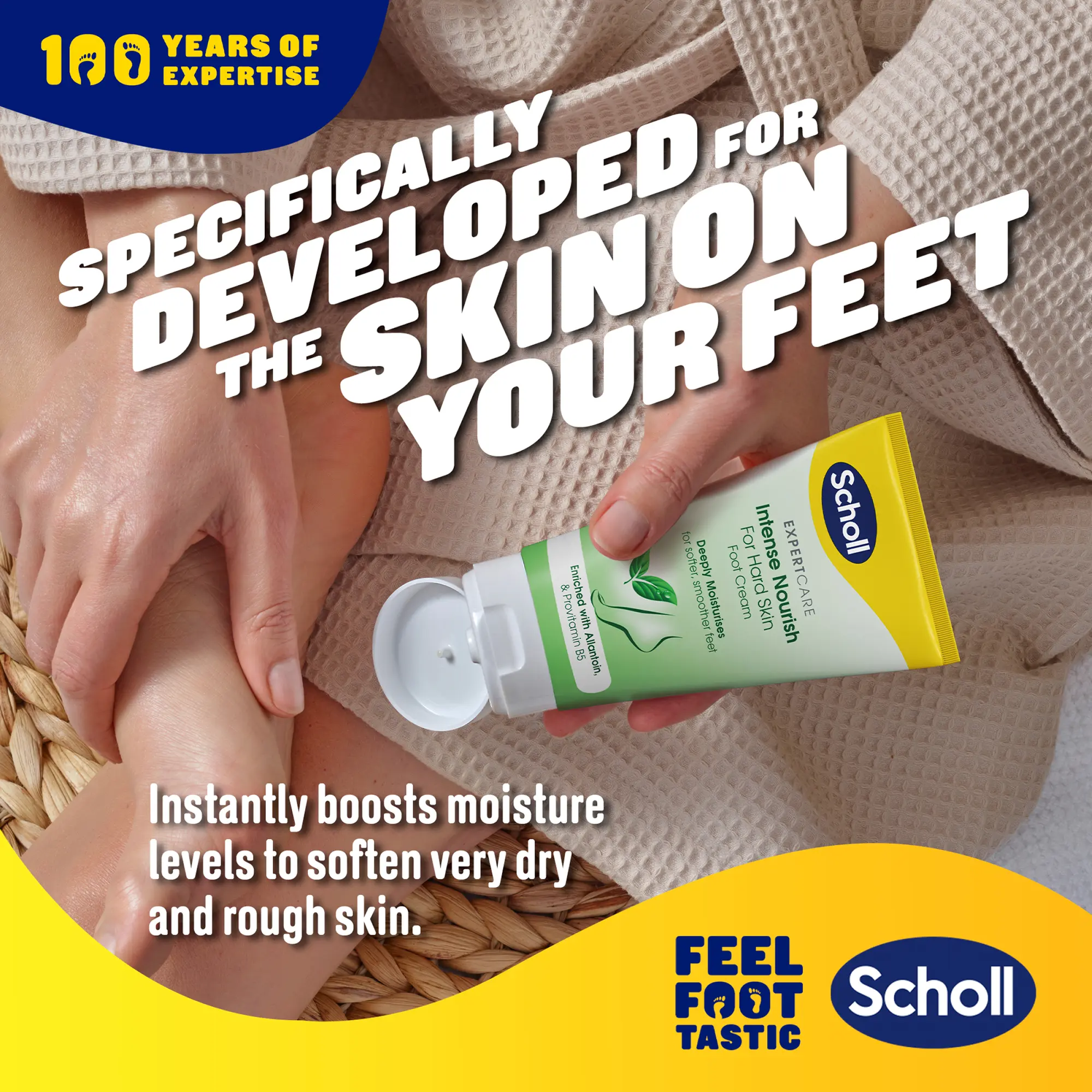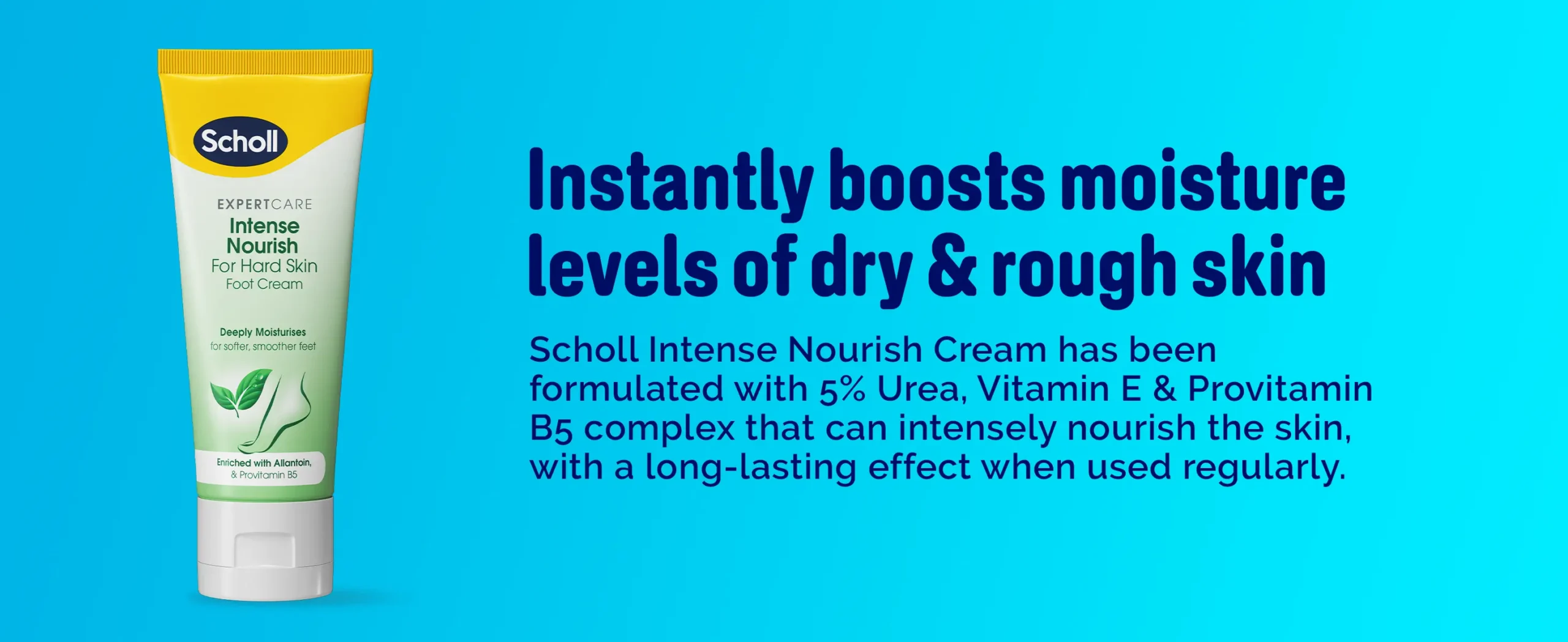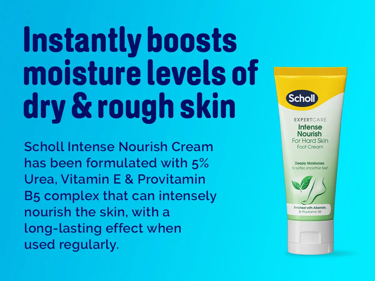 INSTANT MOISTURE BOOST: Scholl ExpertCare Intense Nourish Foot Cream significantly enhances hydration levels, rapidly softening extremely dry and coarse skin for immediate relief.