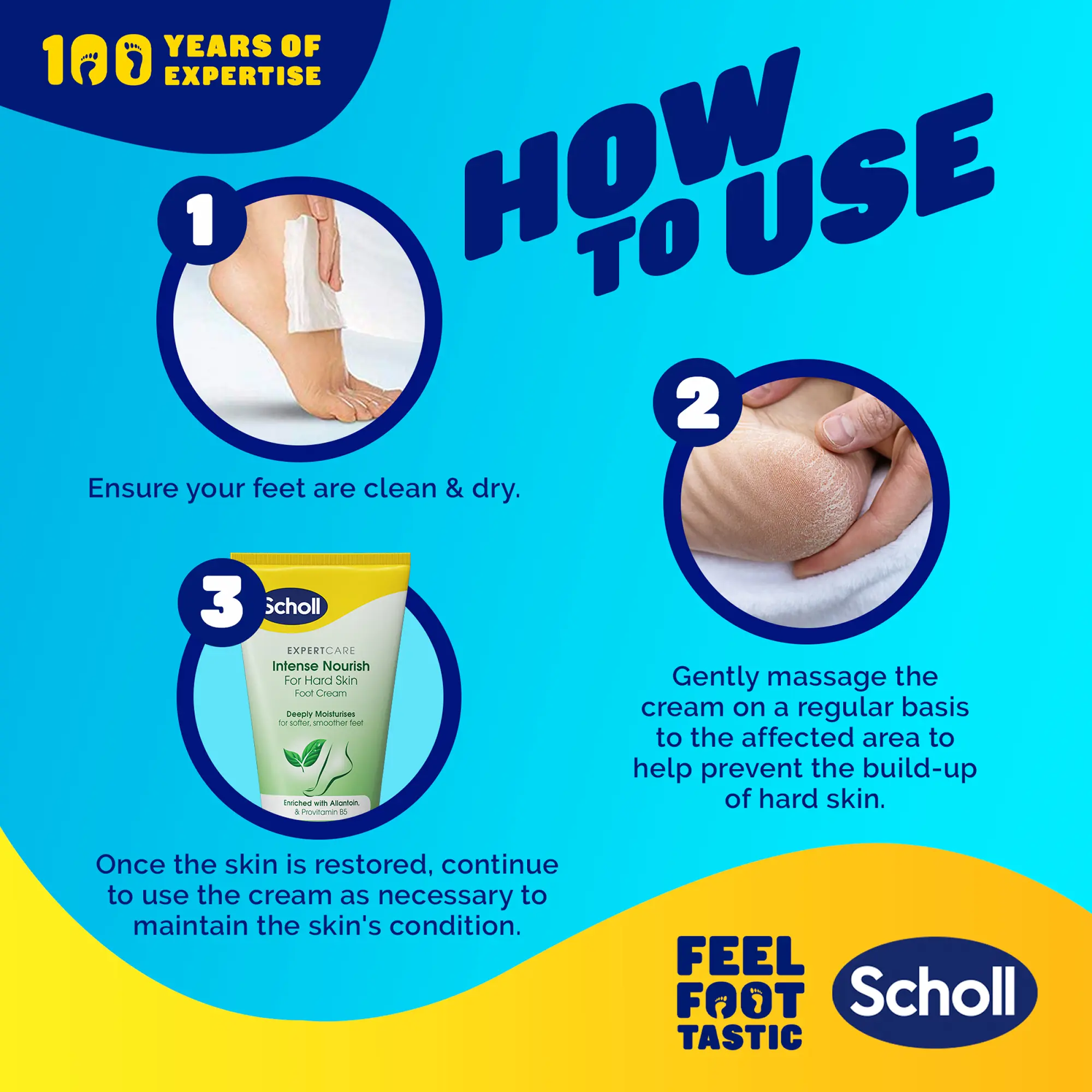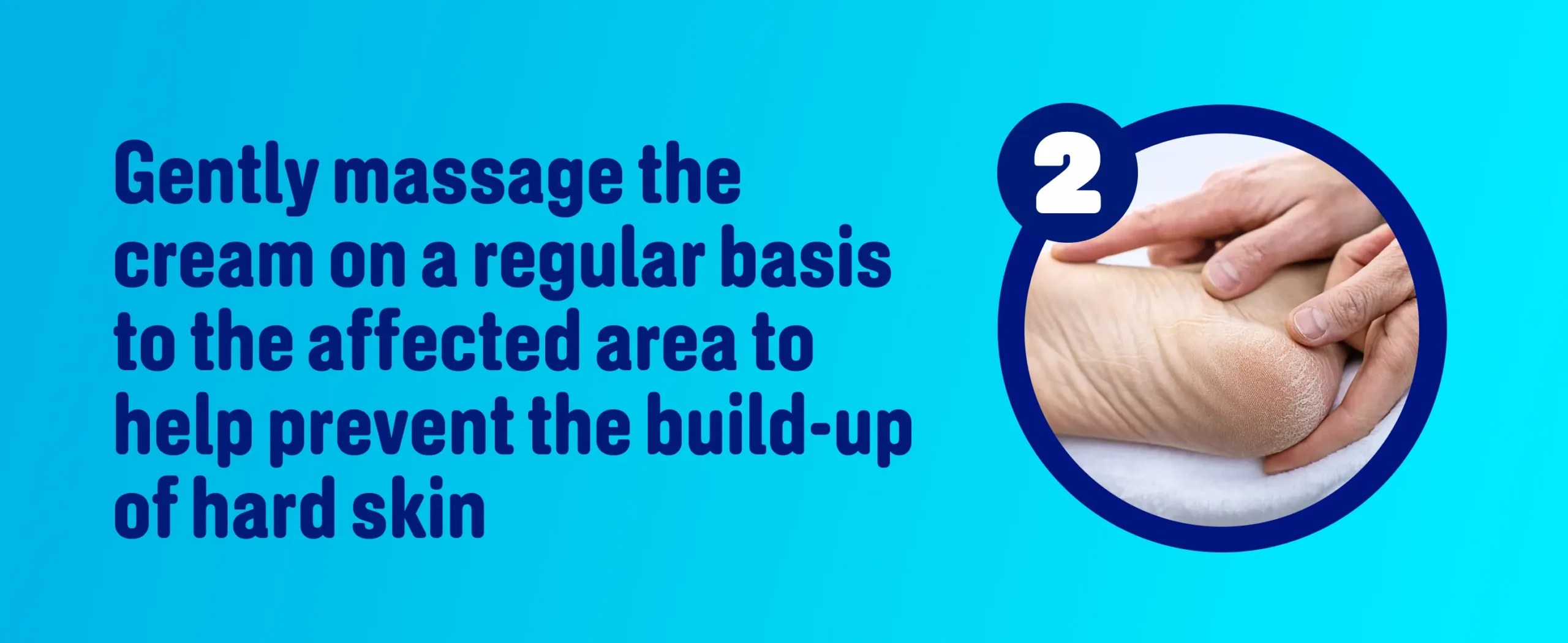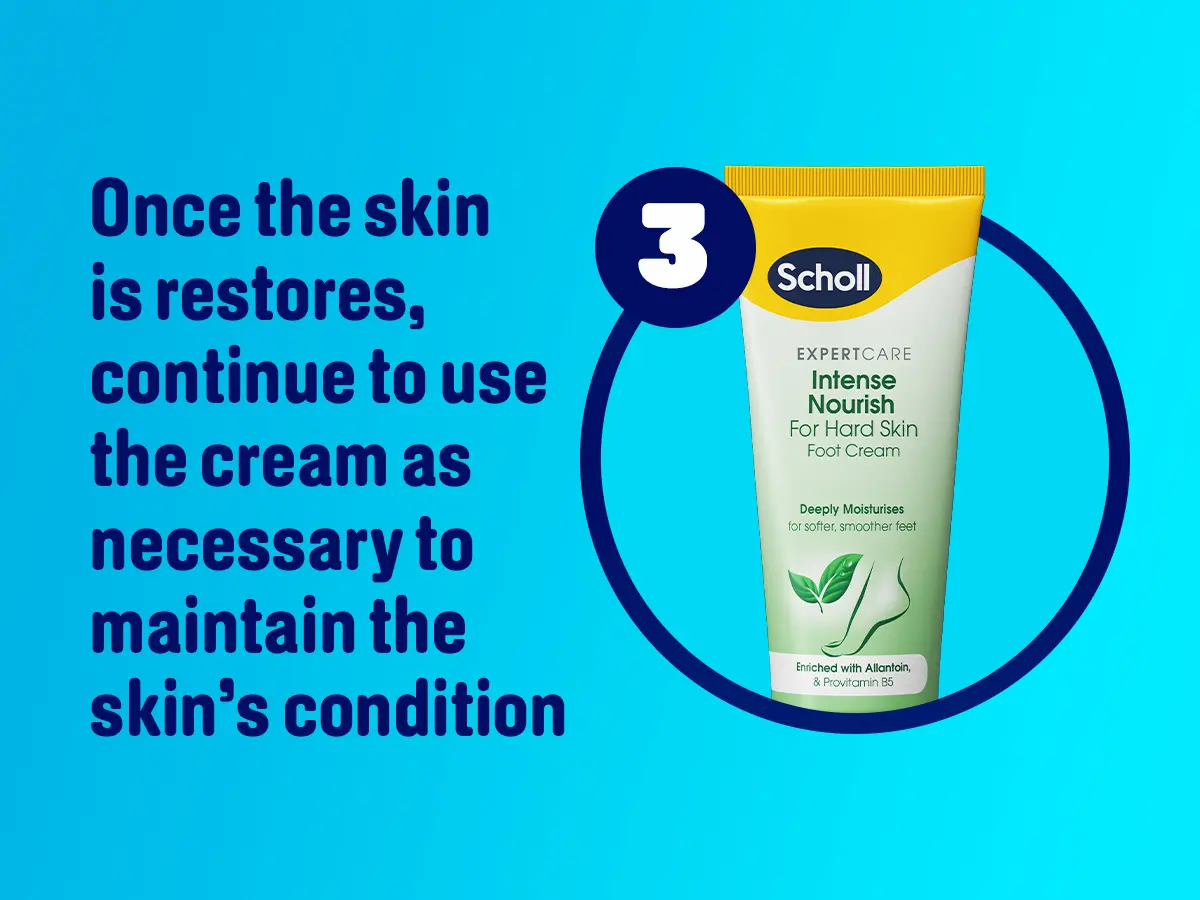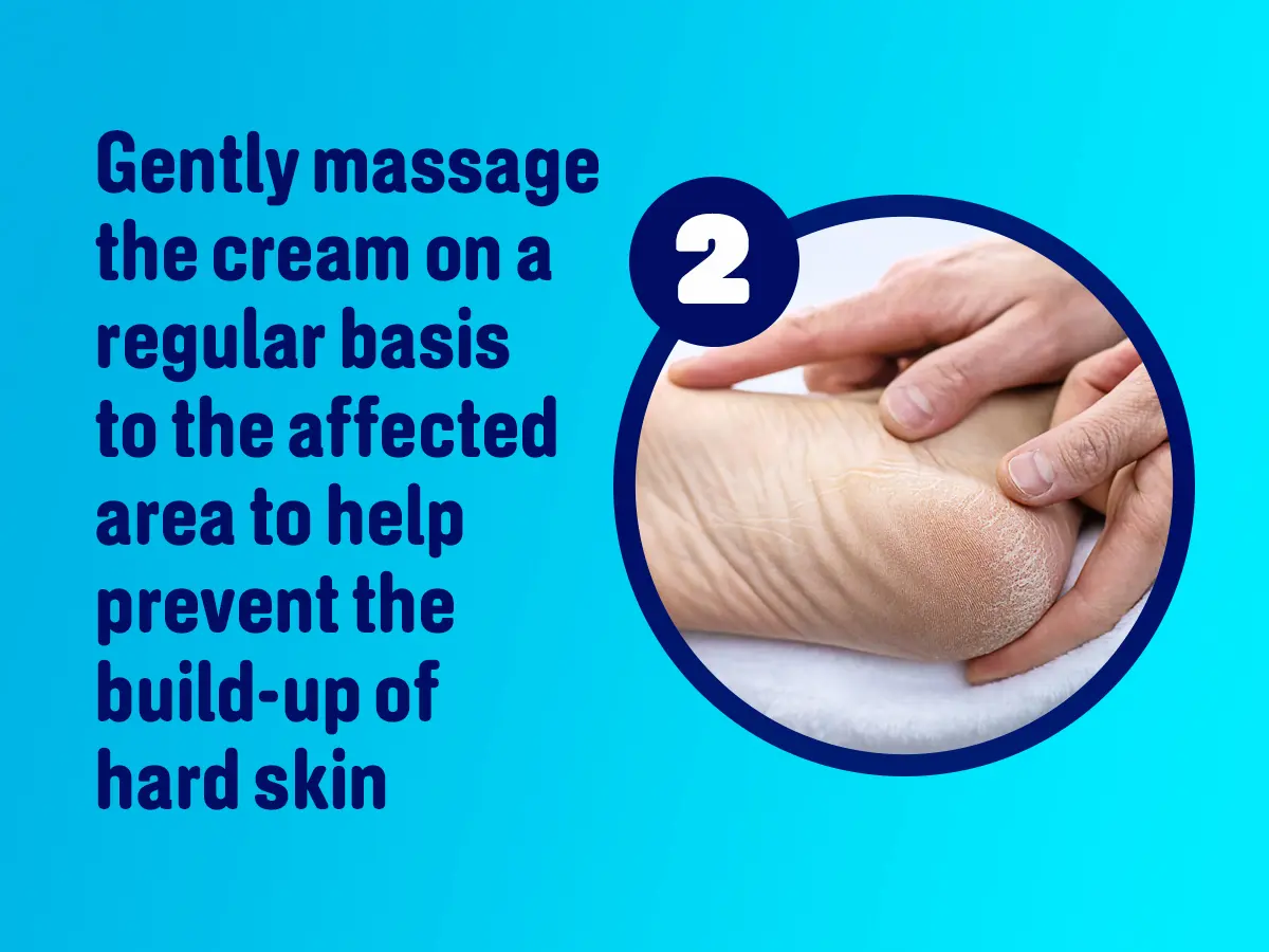 2. Gently massage the cream on a regular basis to the affected area to help prevent the build-up of hard skin.