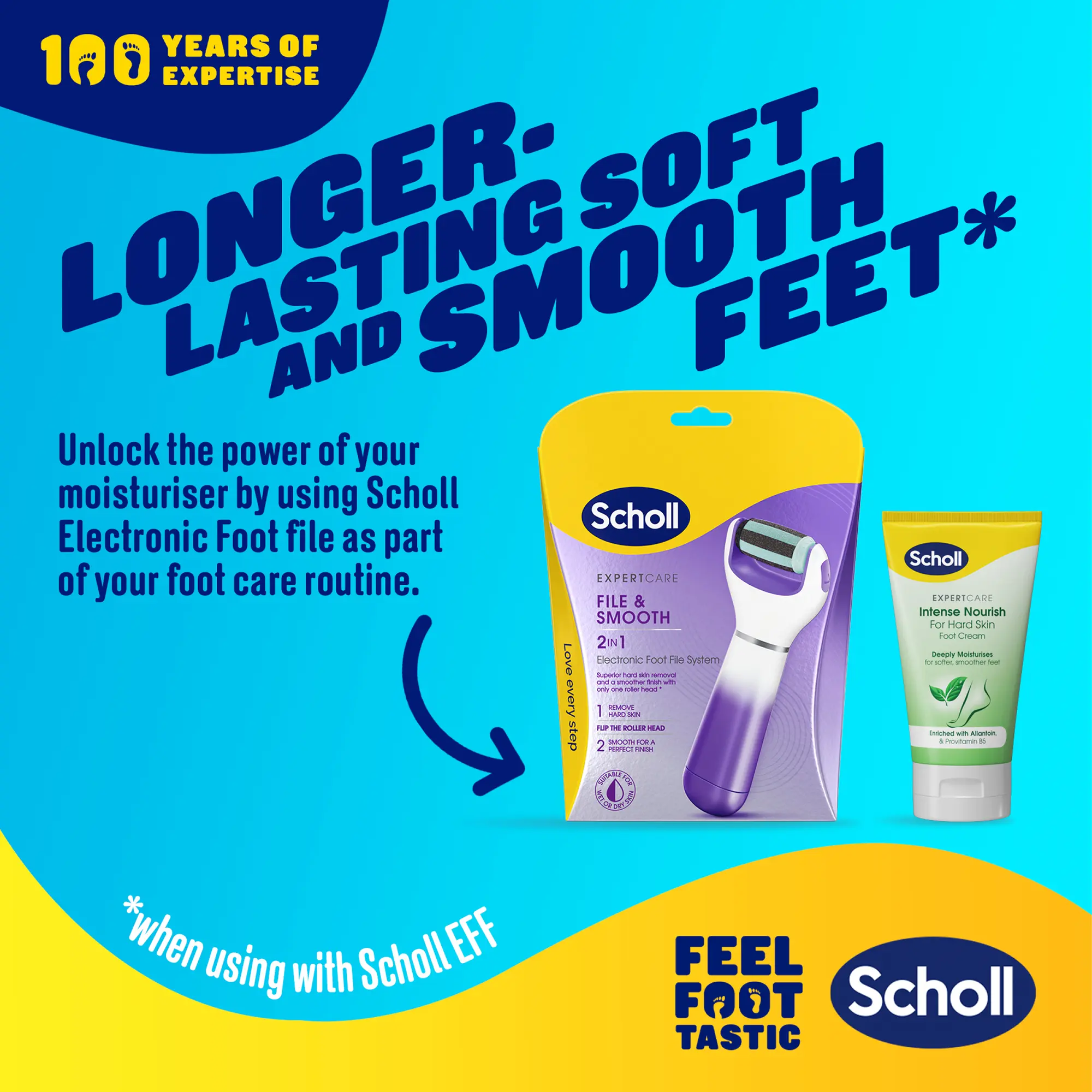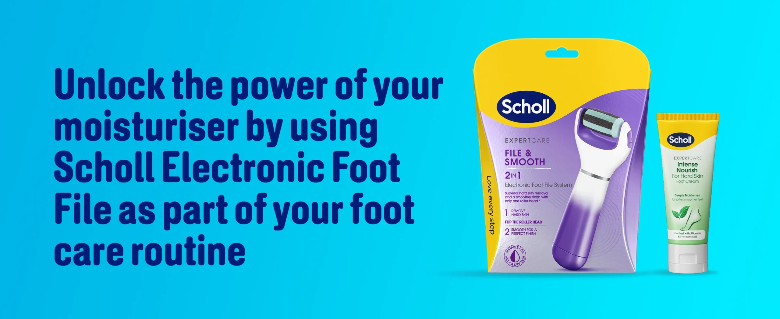 Top Tip: Unlock the power of your moisturiser by using alongside Scholl’s Electronic Foot File as part of your foot care routine.