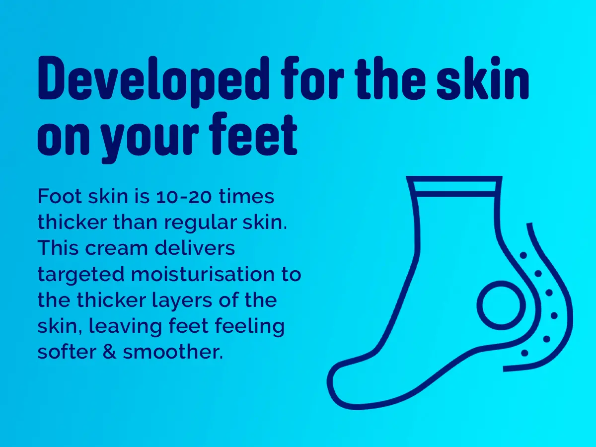 SPECIALISED CARE FOR FOOT SKIN: Recognising that foot skin is up to twenty times thicker than other skin areas, this cream provides the essential intense care needed to prevent hard skin and callus formation, addressing the unique needs of your feet.