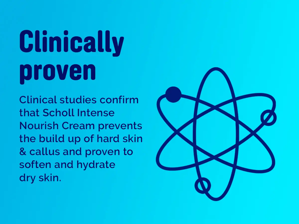 PROTECTION AGAINST HARD SKIN FORMATION: By maintaining optimal moisture levels and nourishment, Scholl Intense Nourish cream not only hydrates but also safeguards against the hardening of skin and the development of calluses, ensuring feet stay soft and protected.