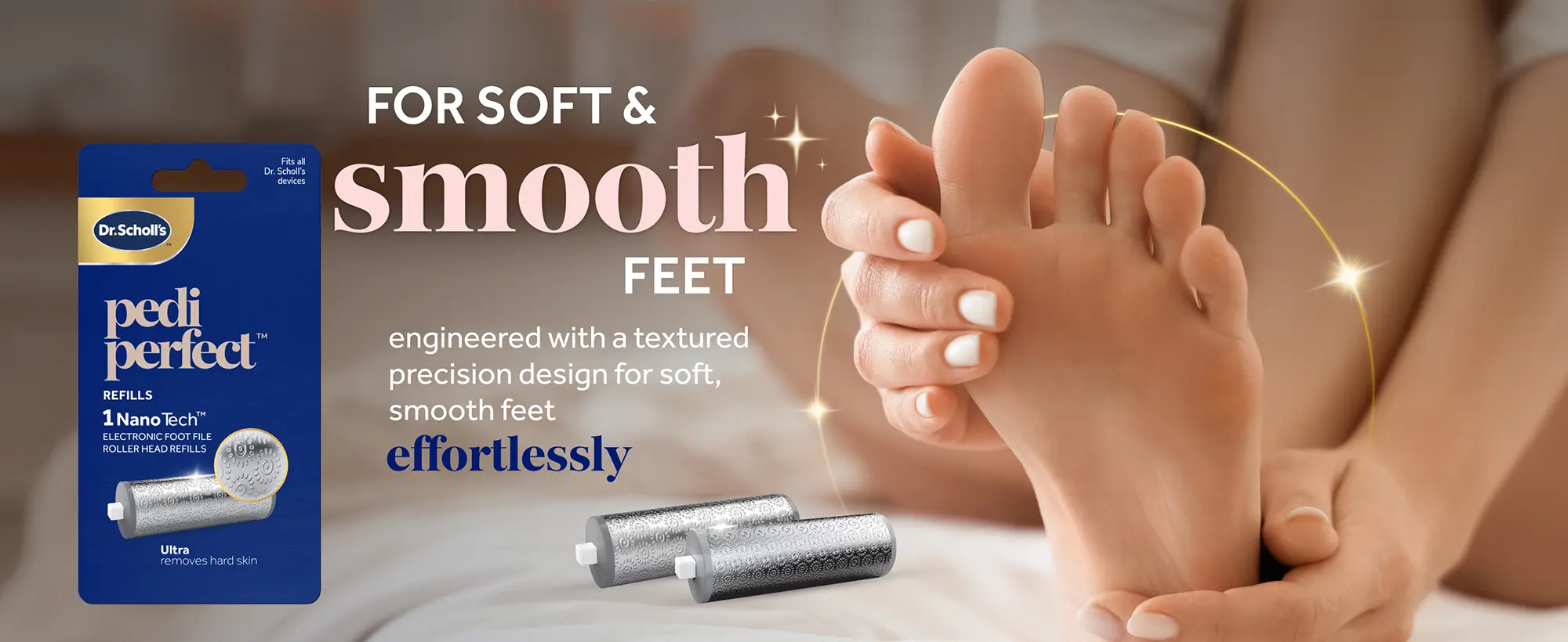 SOFT, SMOOTH FEET: Enjoy soft, smooth feet with innovative NanoTech roller heads engineered with a textured precision design that exfoliates and smooths on wet or dry skin, using a specially-designed rolling surface for effortless results