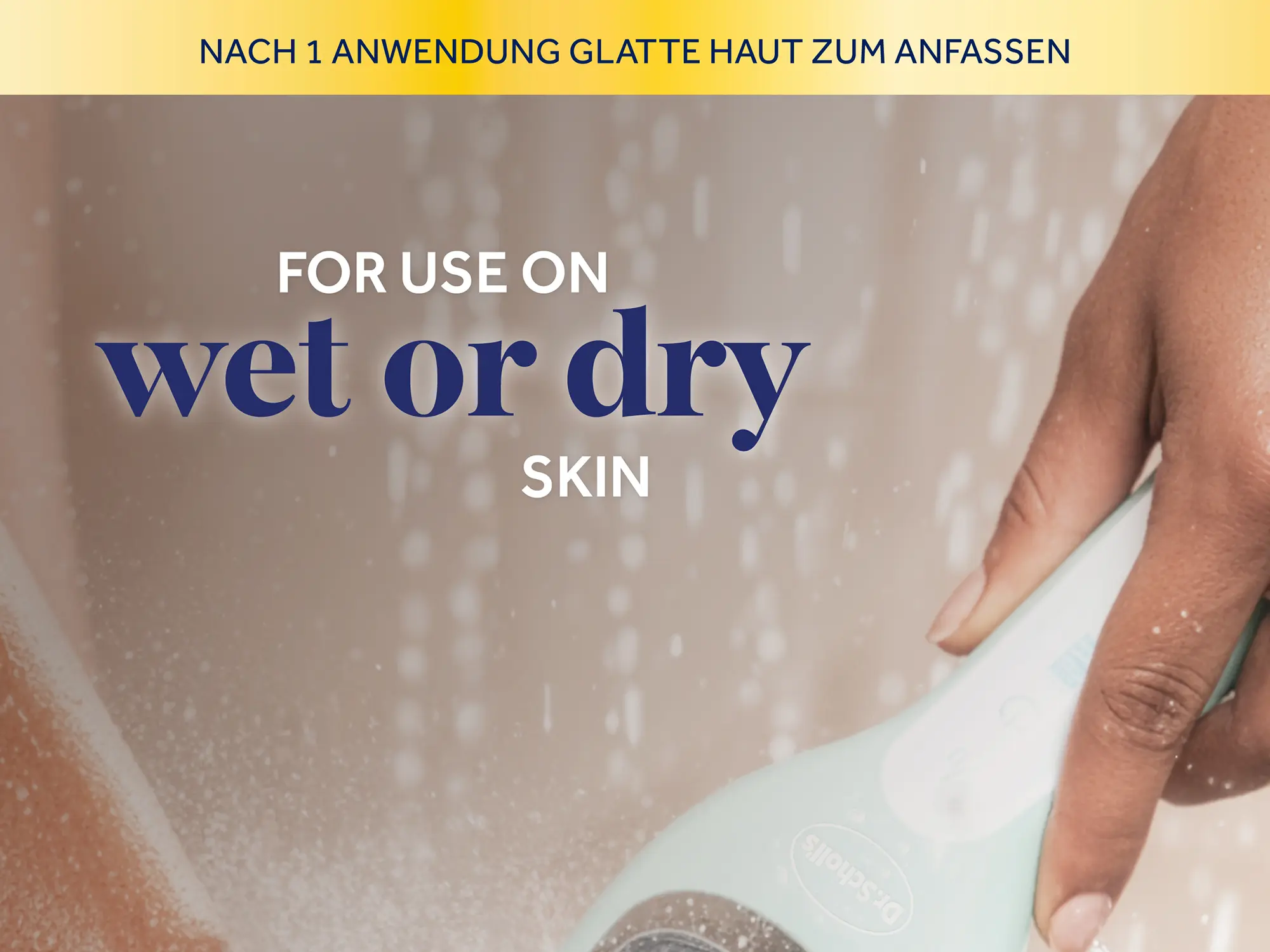 2. Use the Fine Coarse roller head to smooth and polish for frequent light touch-ups on wet or dry skin.