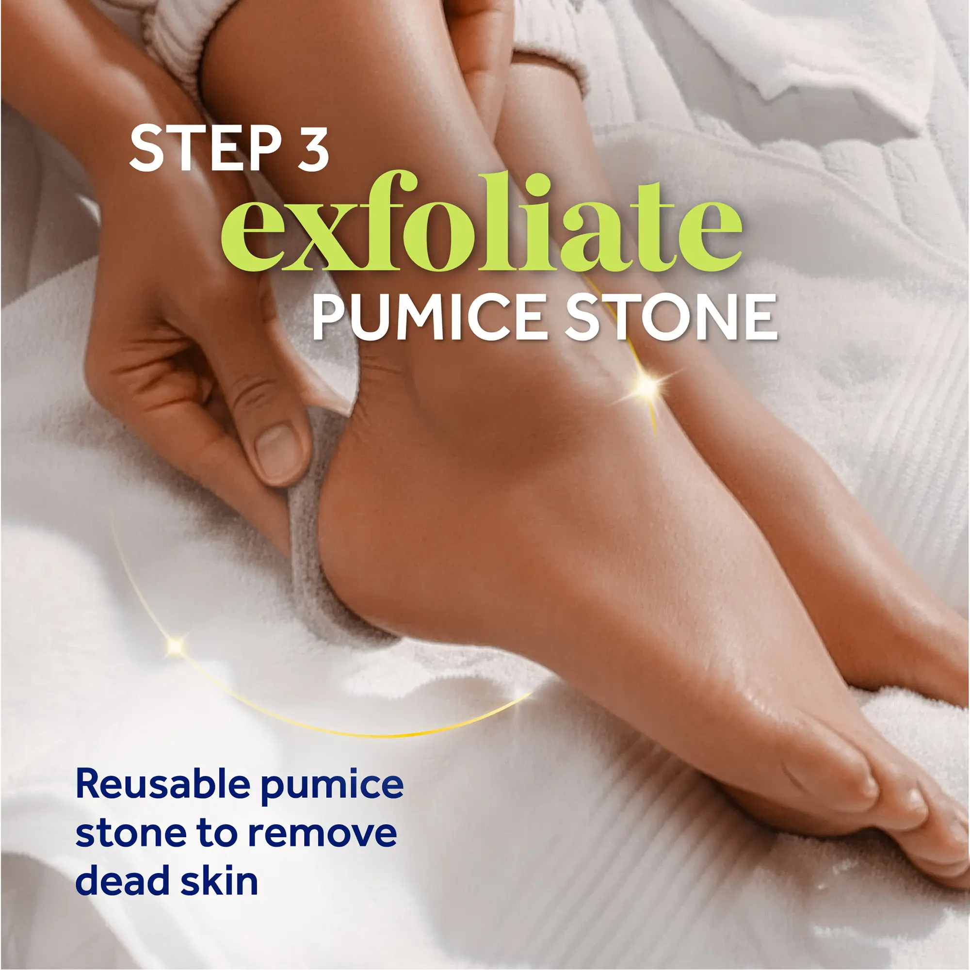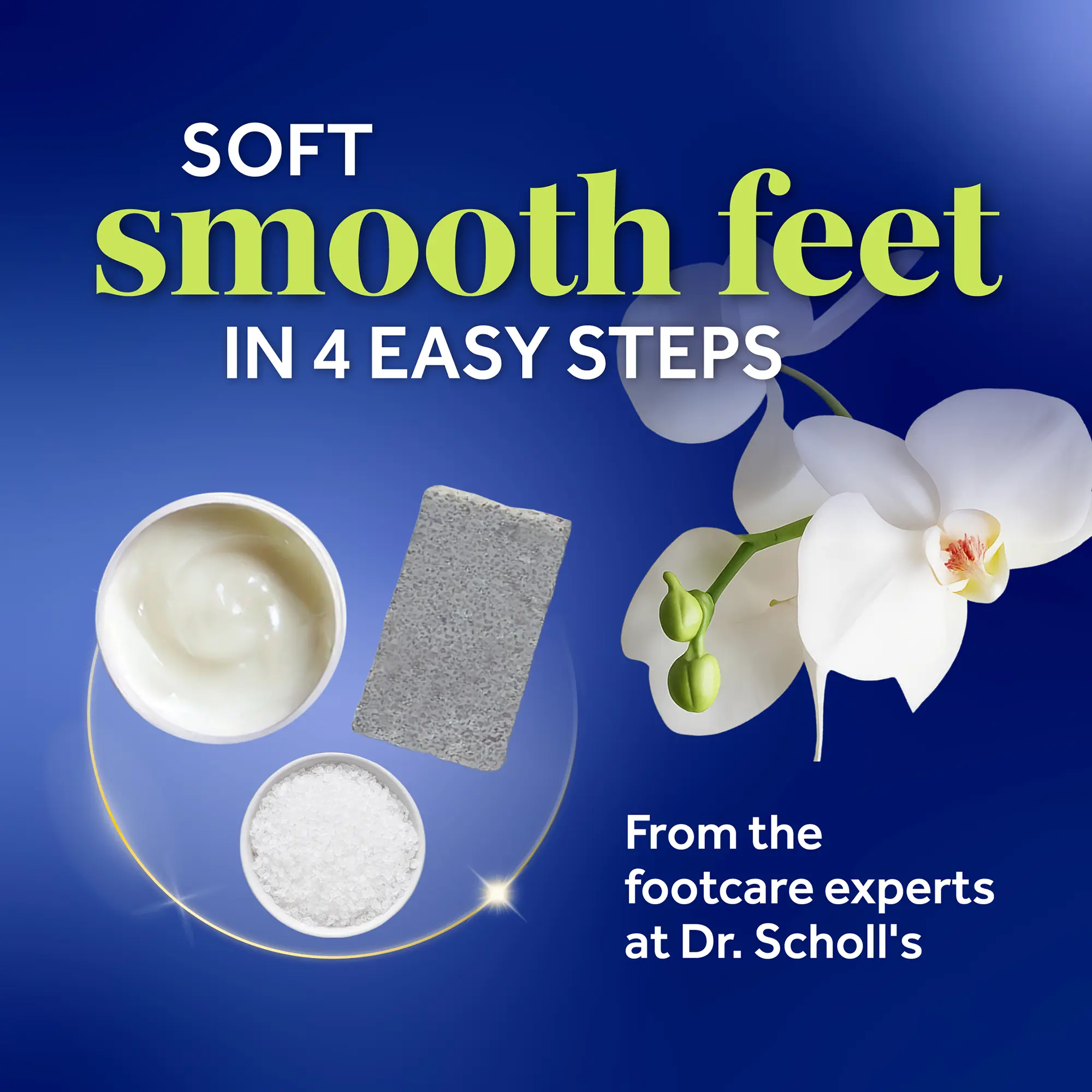 Enjoy soft, smooth feet in minutes. This easy routine is designed to help you feel confident by caring for dry, rough, and callused areas with four simple steps.
