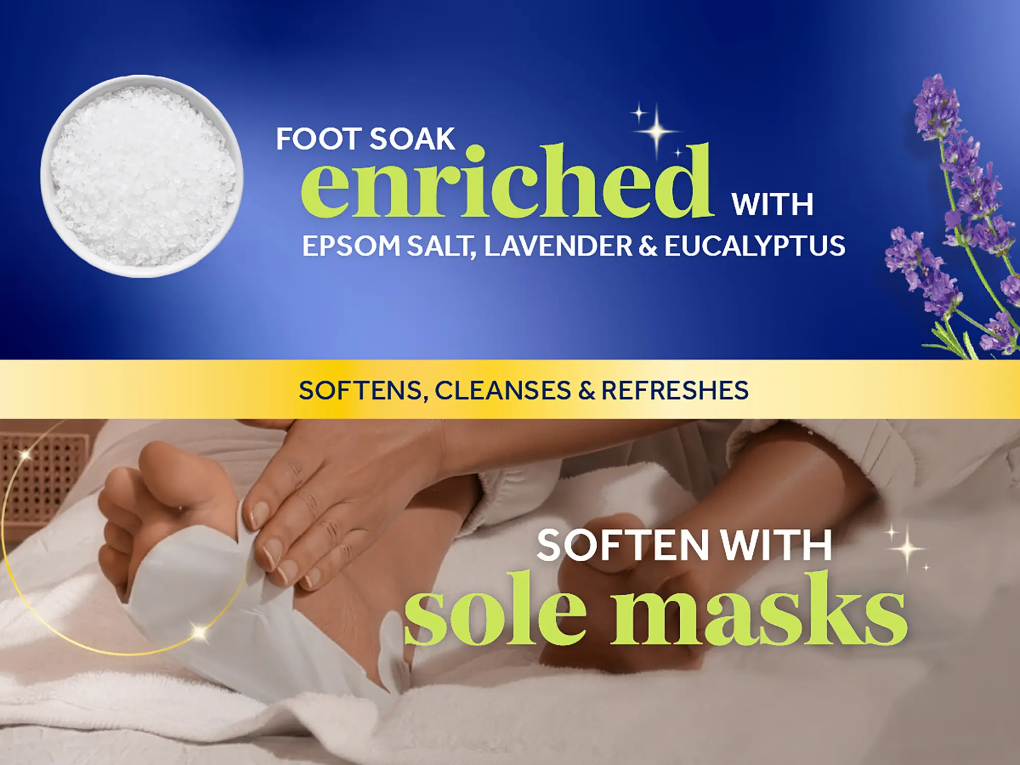 REFRESHING FOOT SOAK: Softens, cleanses, and refreshes with Epsom salt, lavender, and eucalyptus to prepare your feet for exfoliation while helping them feel relaxed and ready for the next step in your pampering routine