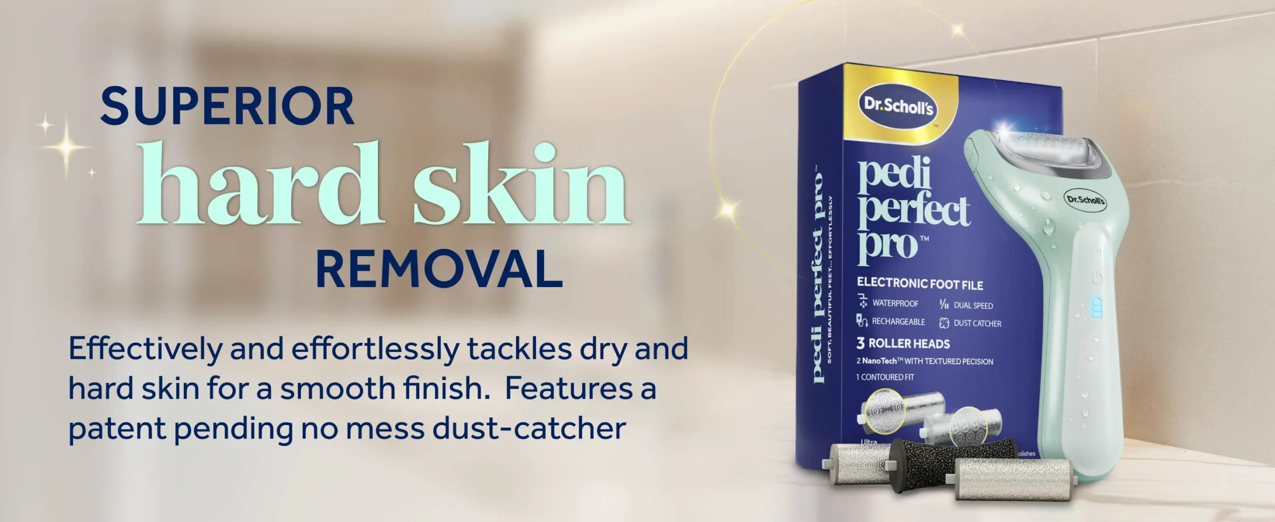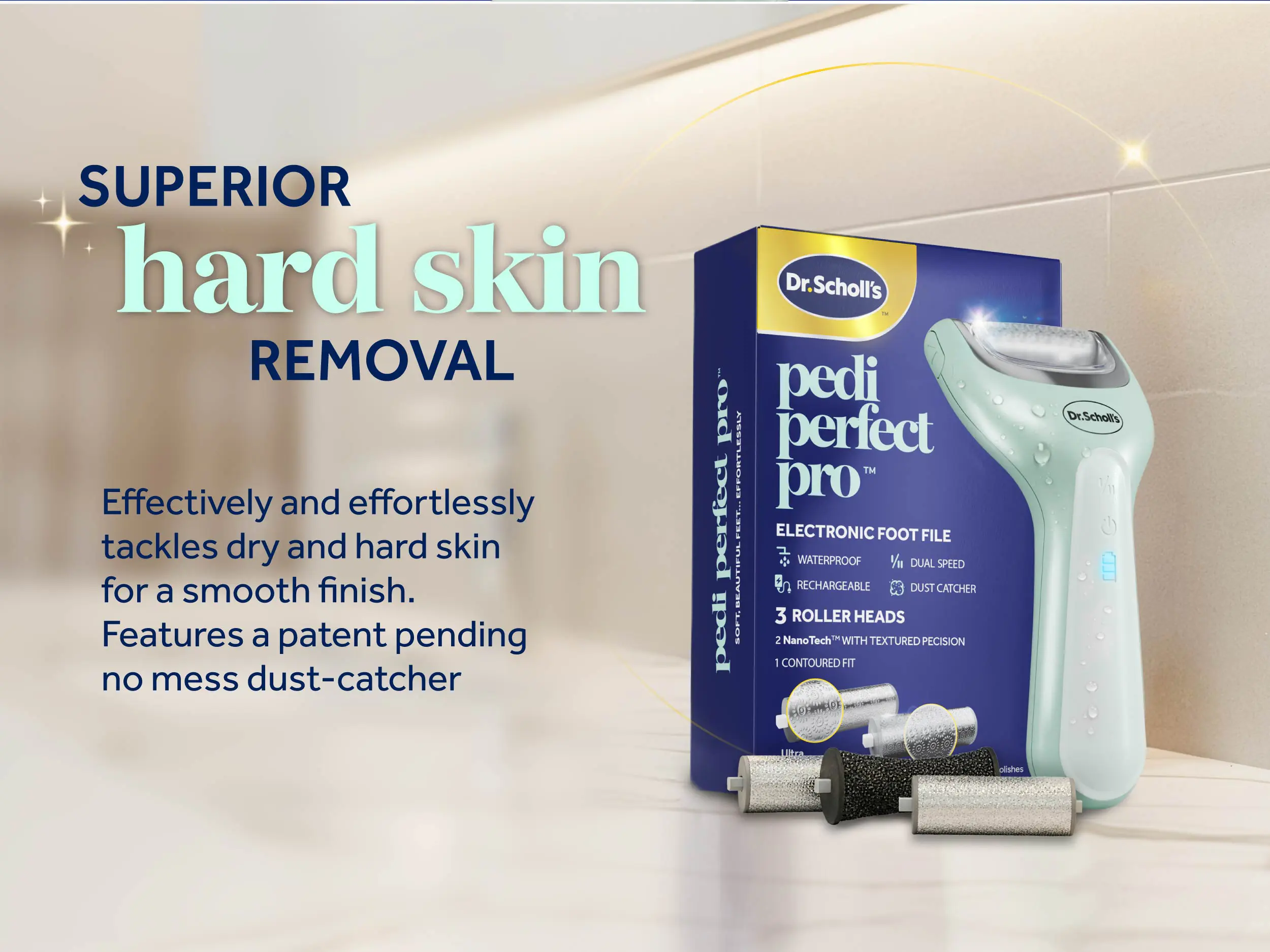 Experience salon-style smoothness at home with Dr. Scholl’s Pedi Perfect Pro Electronic Foot File.