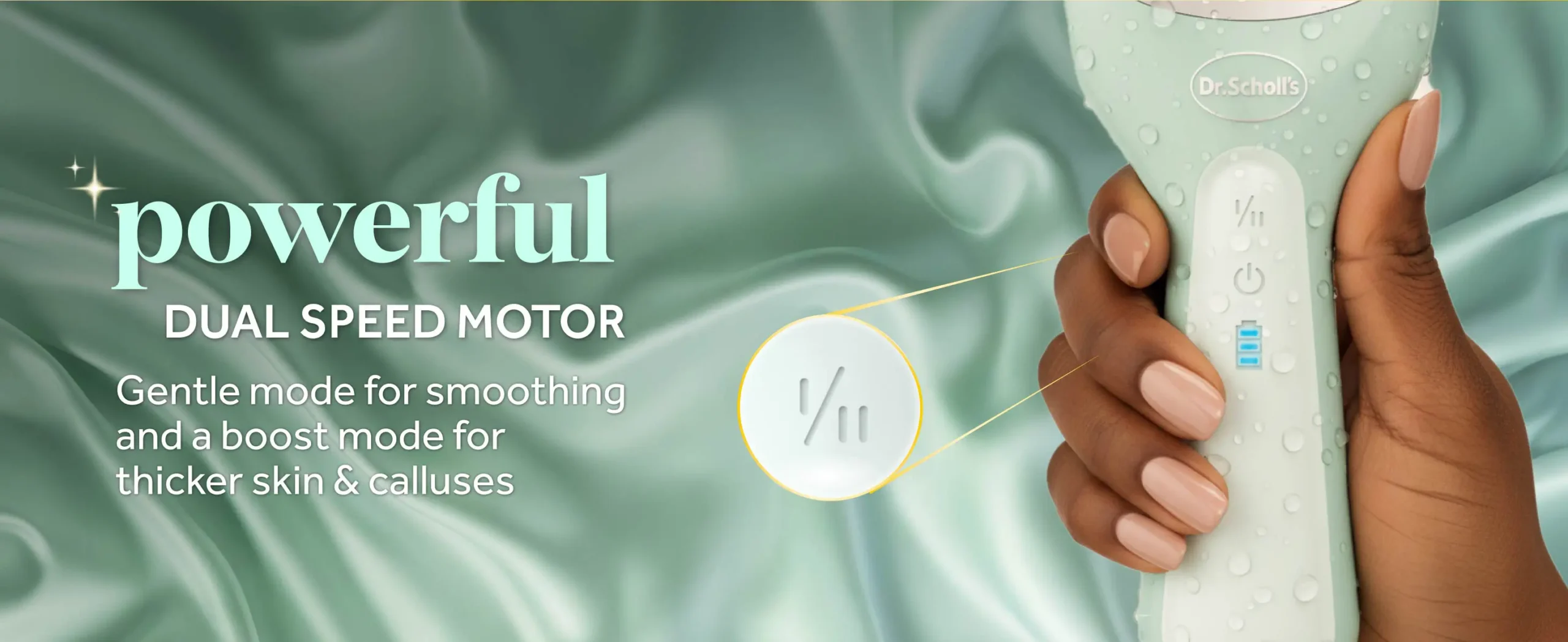 POWERFUL DUAL-SPEED MOTOR: Adjustable motor with two speed settings lets you tailor your treatment to your needs, providing gentle smoothing or a more intense exfoliation to help restore soft, beautiful feet, with Pressure Lock Technology for safe dead-skin removal