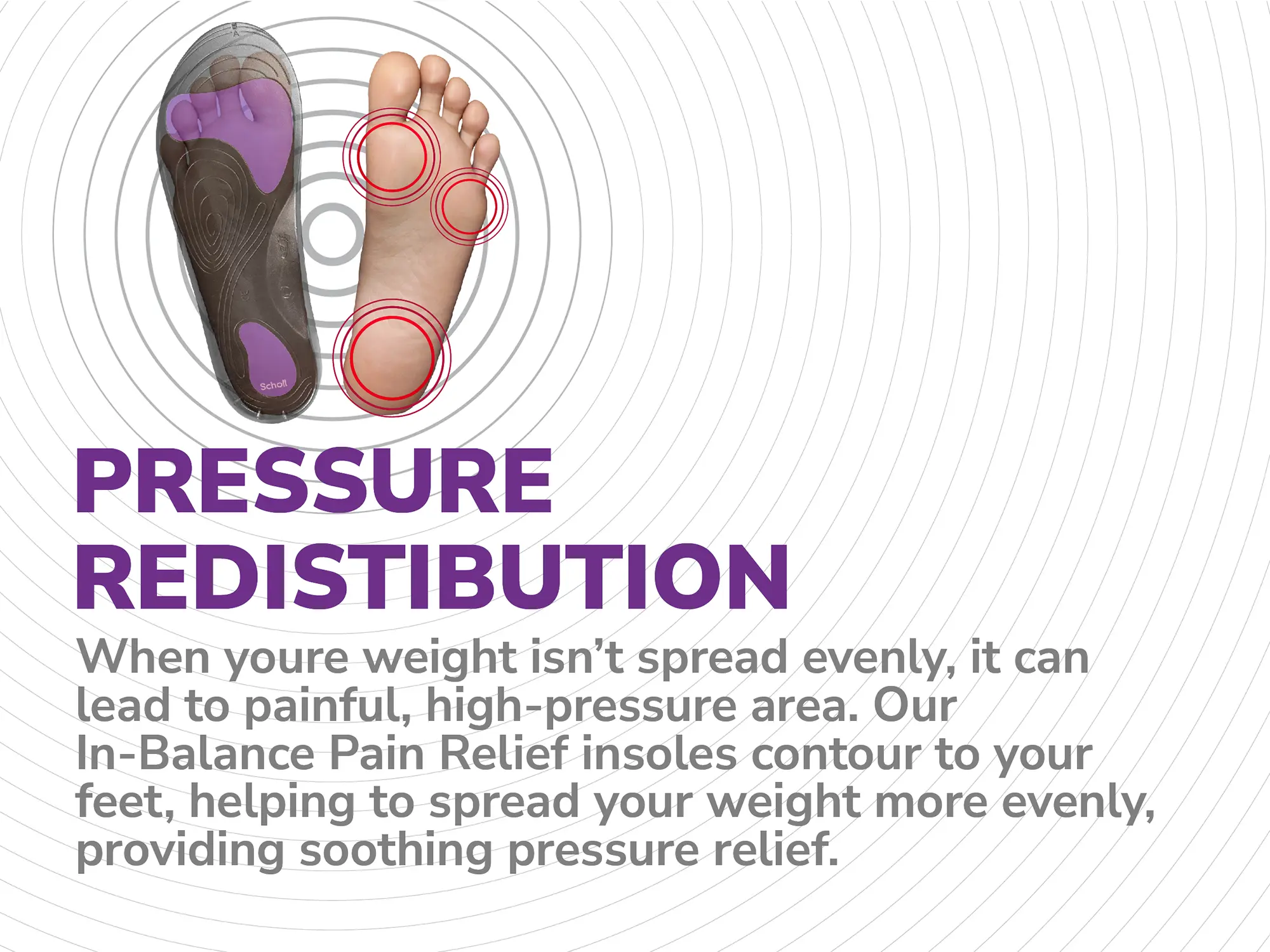 Relieve the agony of plantar fasciitis with our In-Balance Orthotic Insoles, offering targeted pain relief through specialised arch support and heel cushioning. Crafted by biomechanics experts, these insoles boast premium construction with durable and breathable materials, ensuring long-lasting performance. Designed for daily wear and tear, they provide continuous orthotic support, aligning your foot to its natural position and relieving pressure on specific areas. The clinically proven 3in1 action—shock absorption, stabilisation, and pressure redistribution—effectively tackles plantar fasciitis pressure with every step. Versatile and compatible with various shoe types, these insoles seamlessly integrate into your footwear collection for unparalleled comfort and support.
