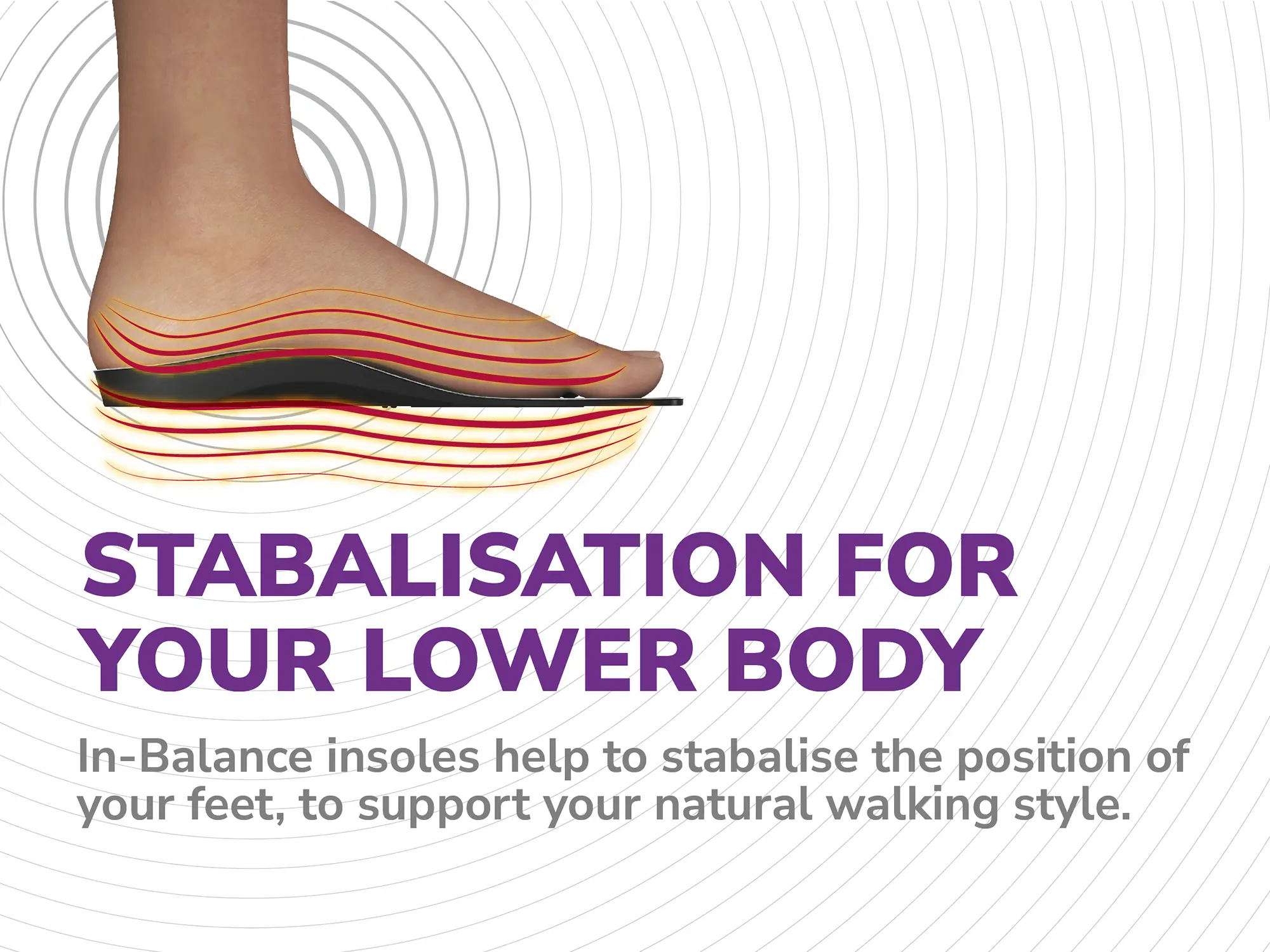 VERSATILE DESIGN: The In-Balance insoles are designed to fit most shoe sizes and shoe types. Whether you’re wearing athletic shoes, casual footwear, or work boots, these insoles seamlessly integrate into your favourite footwear collection, providing support and comfort.