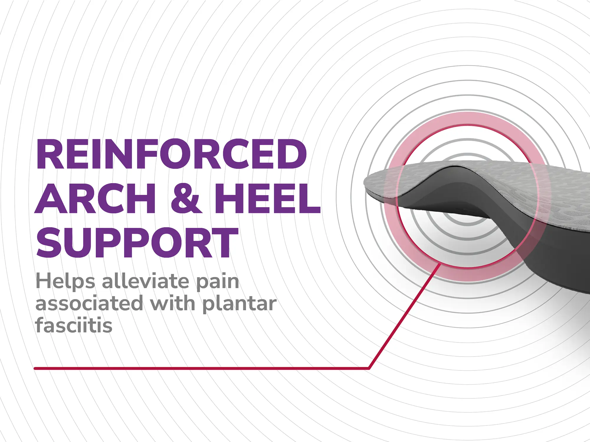 Relieves plantar fasciitis pain with targeted arch support and heel cushioning.