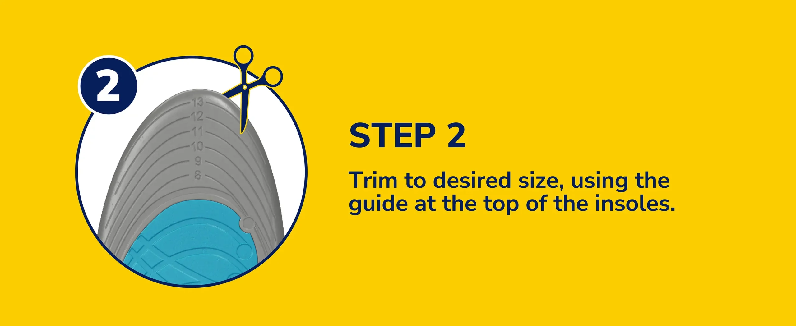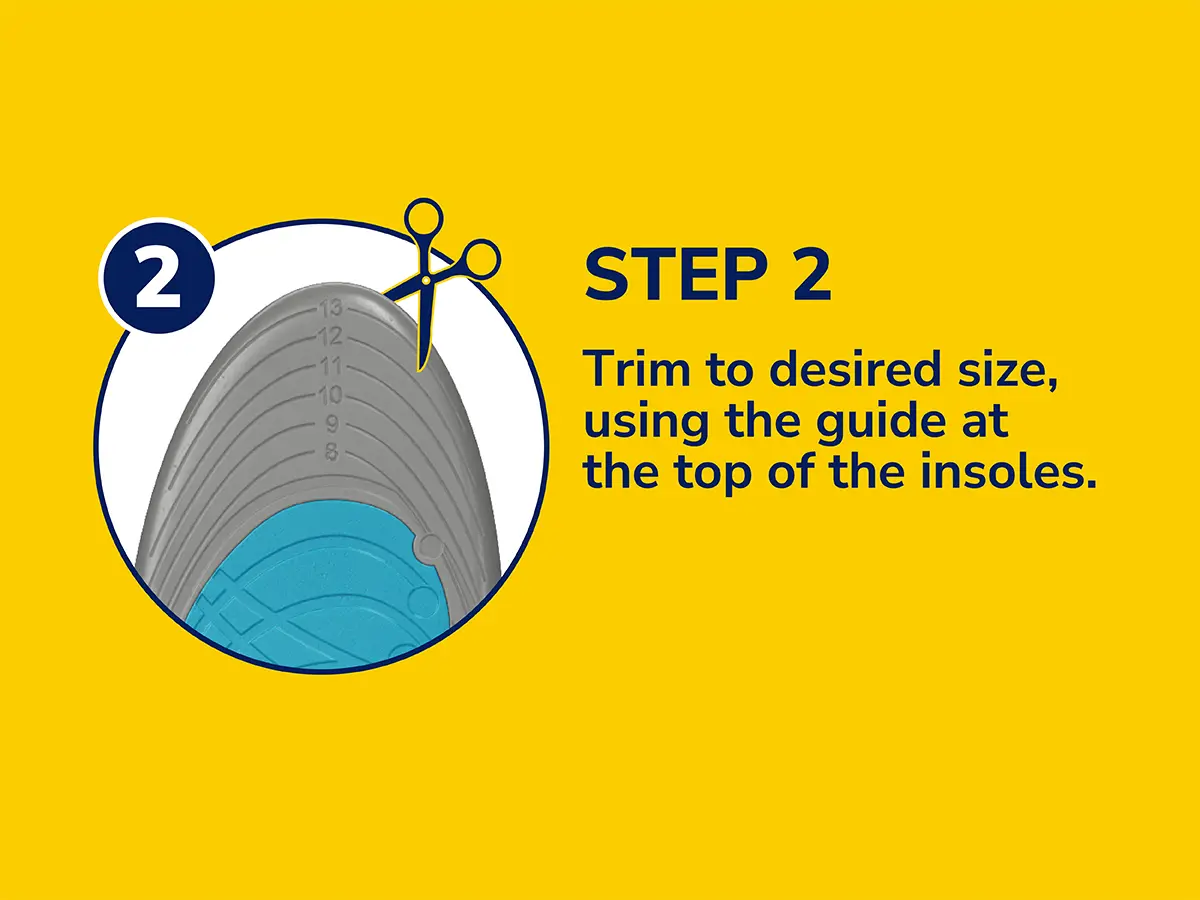 1. Trim the insole to fit your shoe using the marked lines and scissors.