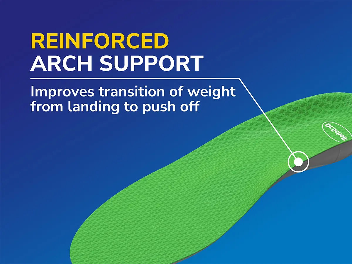 REINFORCED ARCH SUPPORT: With reinforced arch support, these insoles improve weight transition from landing to push-off, enhancing stability and reducing strain during intense activities