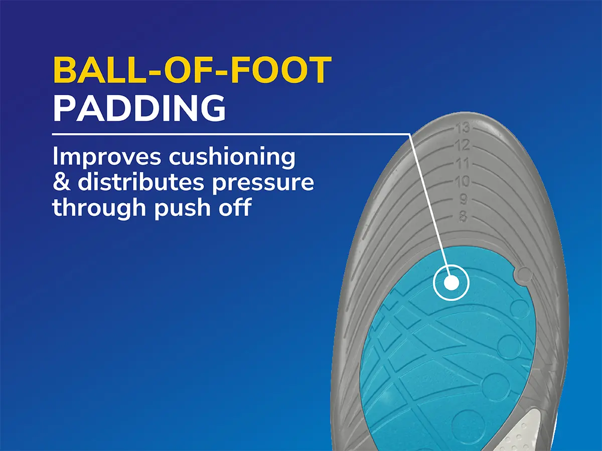 CUSHIONING FOR COMFORT: Ball-of-foot padding provides cushioning and evenly distributes pressure, improving comfort through every push-off and stride