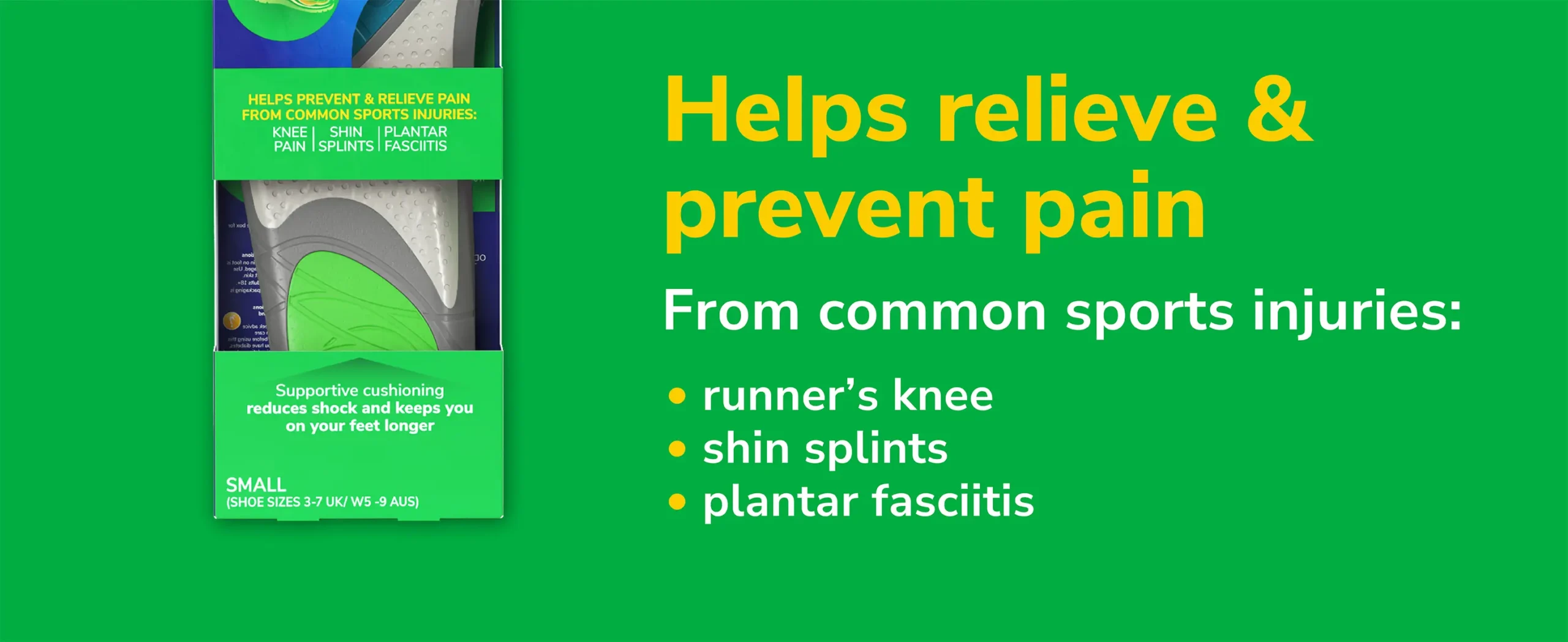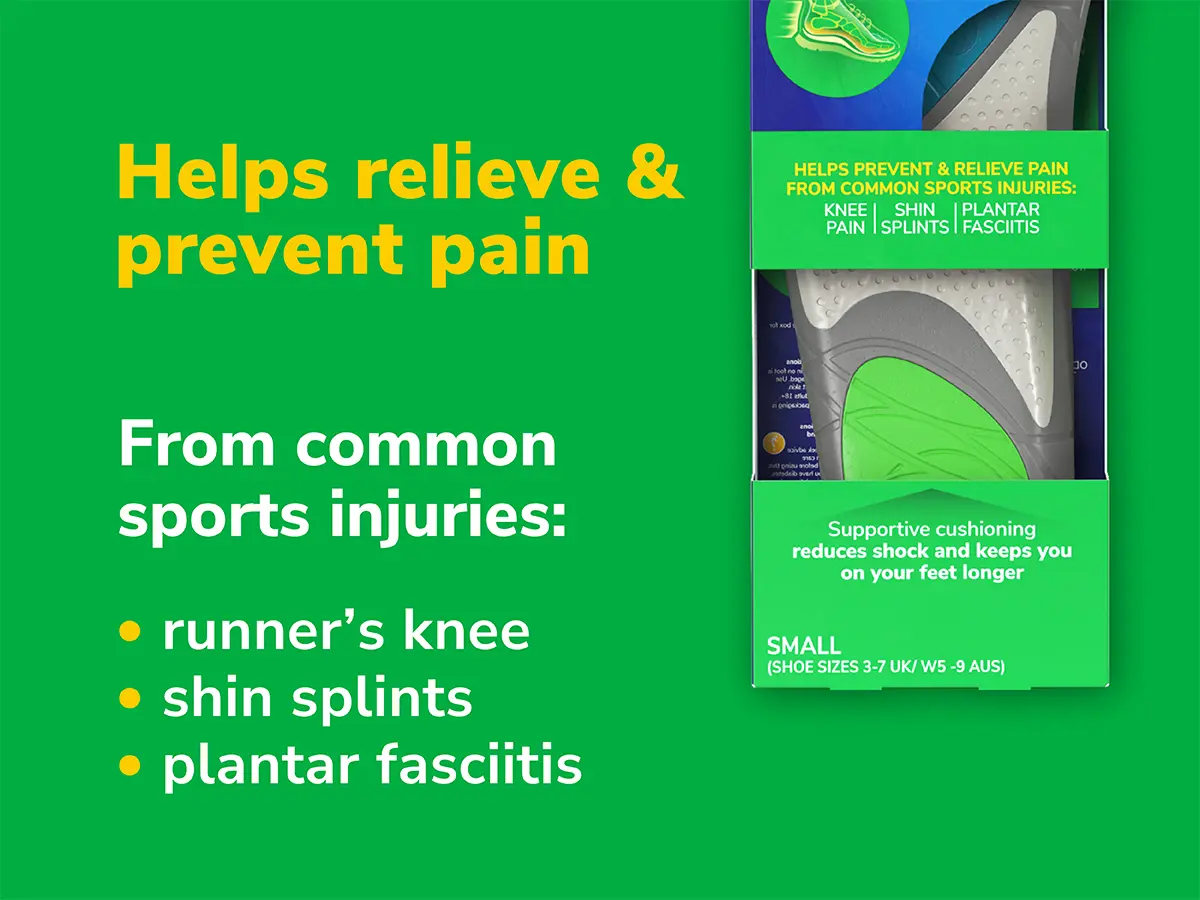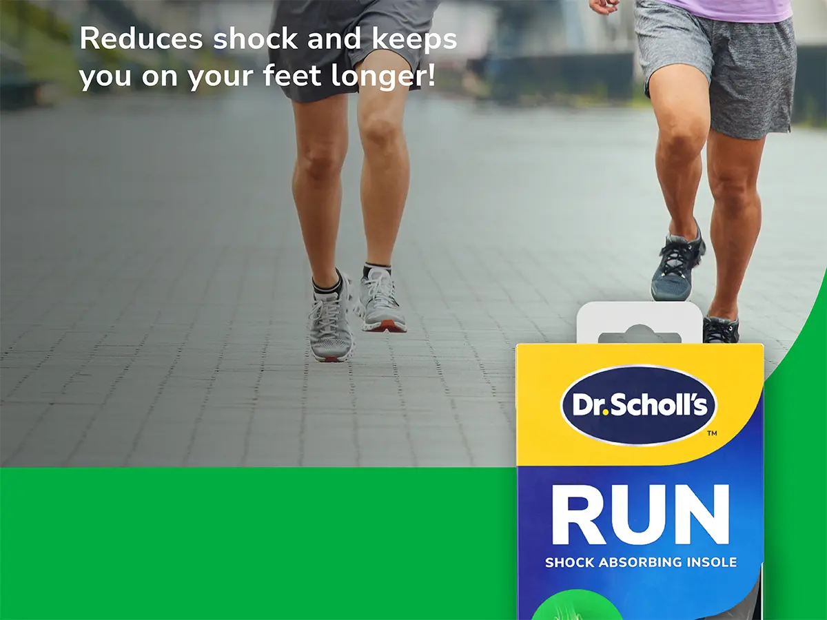 HELP TO RELIEVE PAIN FROM COMMON SPORTS INJURIES: Dr. Scholl’s Run Shock Absorbing Insoles help alleviate pain from common running injuries, including runner’s knee, shin splints, and plantar fasciitis, keeping you comfortable on the move