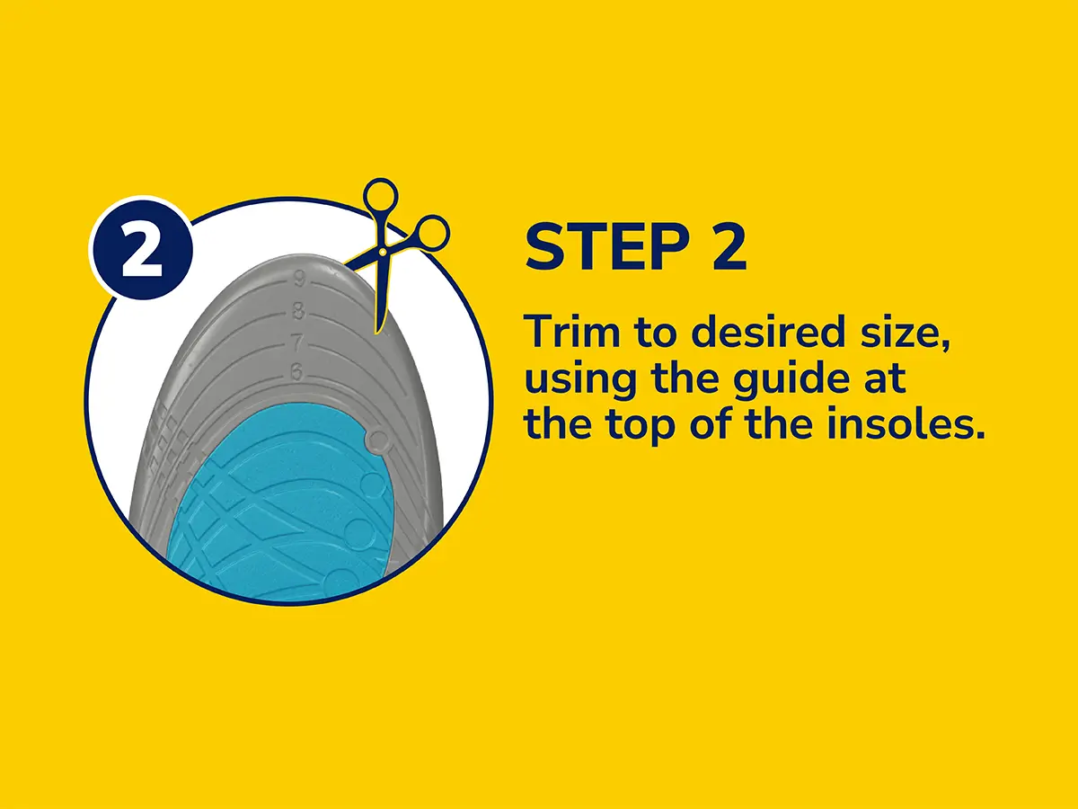 1. Trim the insole to fit your shoe using the marked lines and scissors.