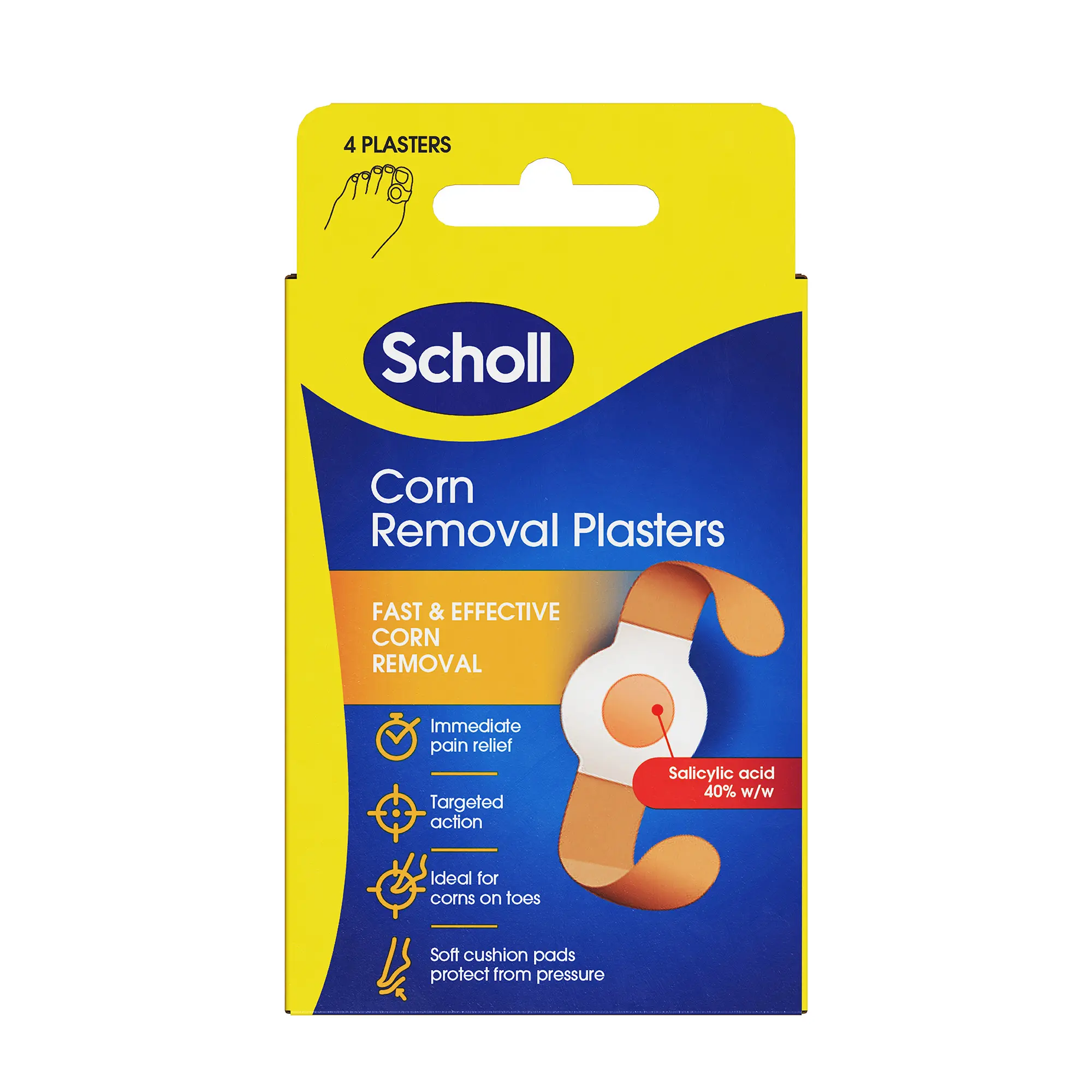 RELIEVE AND REMOVE: Scholl Corn Removal Plasters are designed for the treatment of painful corns; using highly effective embedded discs, containing Salicylic Acid, they will break the corn down