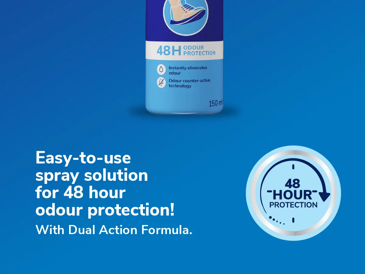 Eliminates odours and keeps shoes fresh all day with 24-hour protection.