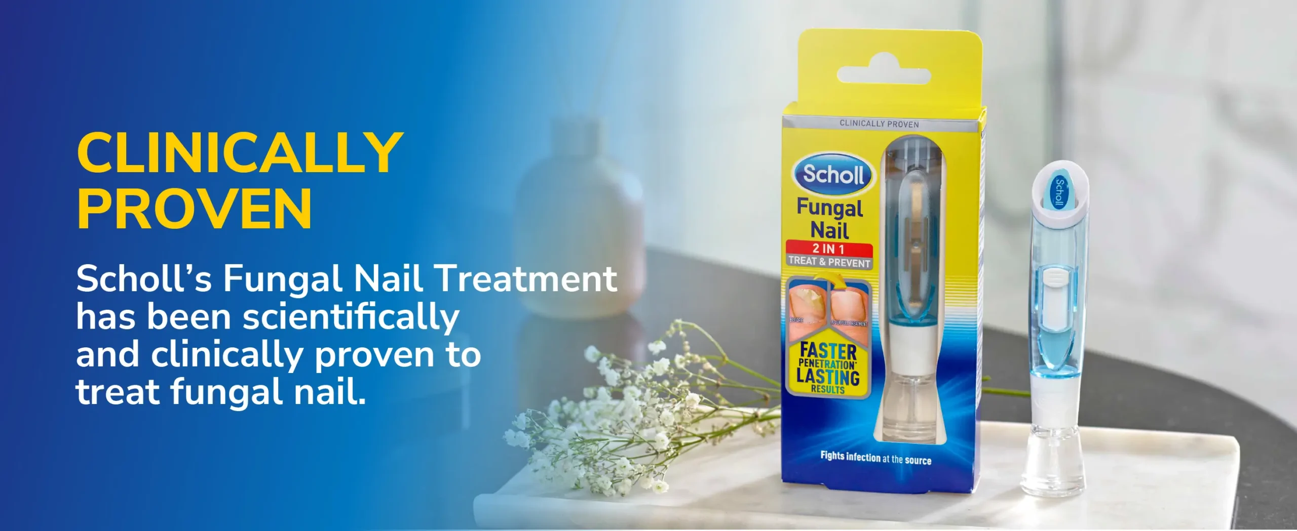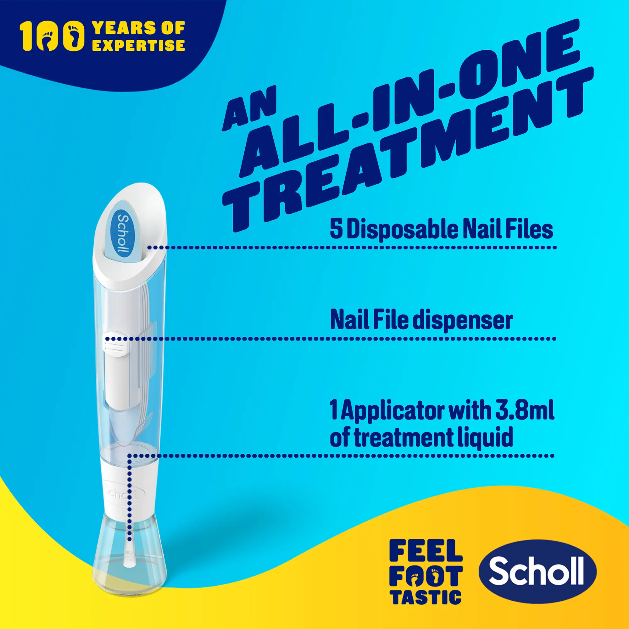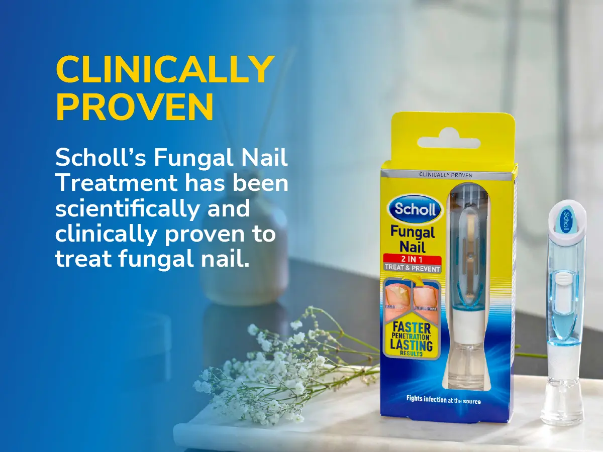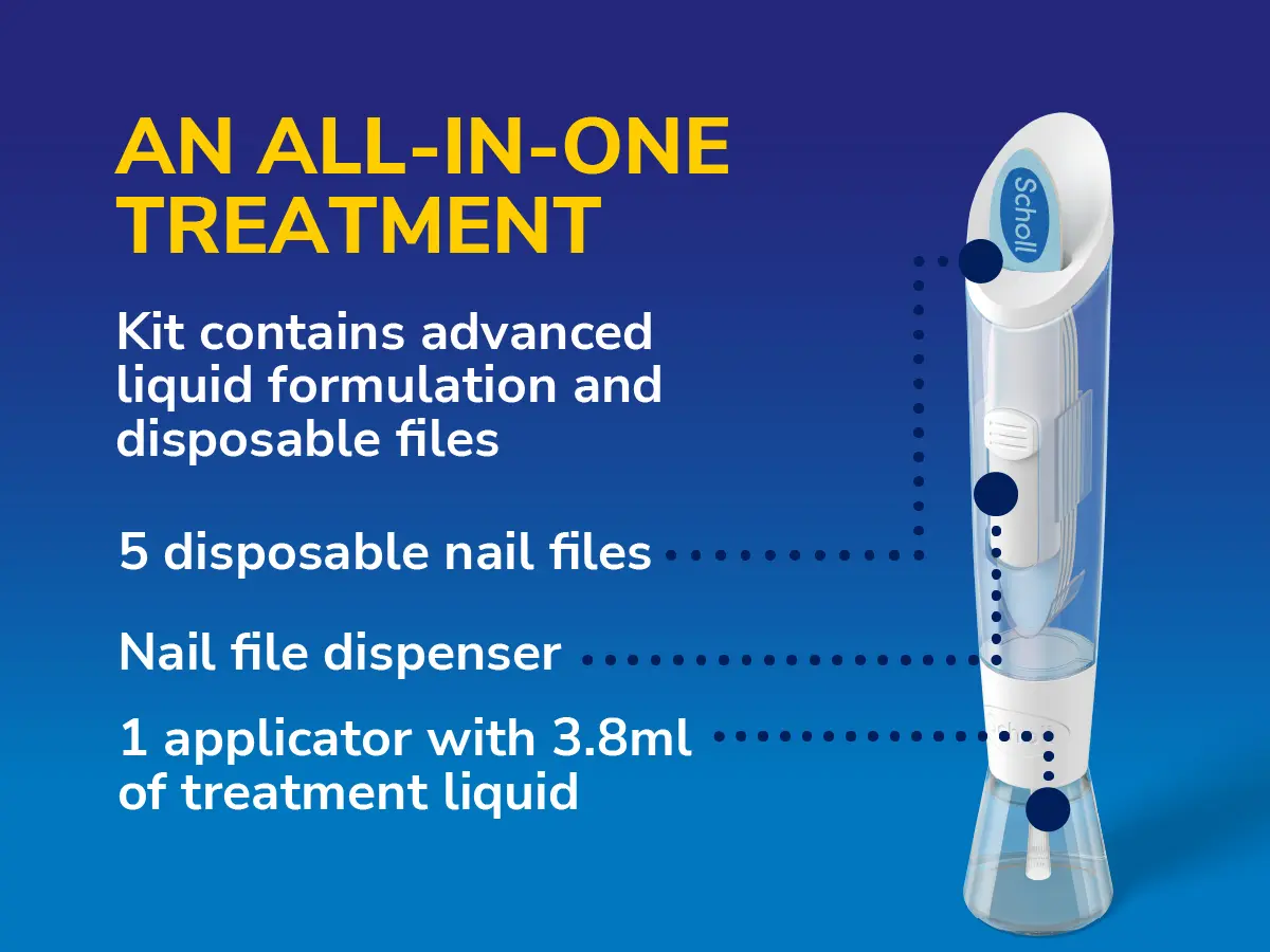 Scholl’s 2-in-1 Fungal Nail Treat & Prevent Kit is a clinically proven solution that targets fungal infections at the source. Its specially formulated liquid penetrates deep into the nail to improve nail appearance and support healthier-looking nails over time. The dual-action formula treats the current infection while helping to prevent its spread and recurrence by forming a protective barrier. Easy to use with no prescription needed, the kit includes a brush-on applicator and five disposable nail files to promote faster absorption and maintain hygiene. Dermatologically tested, visible improvement can be seen in as little as two weeks with regular use.
