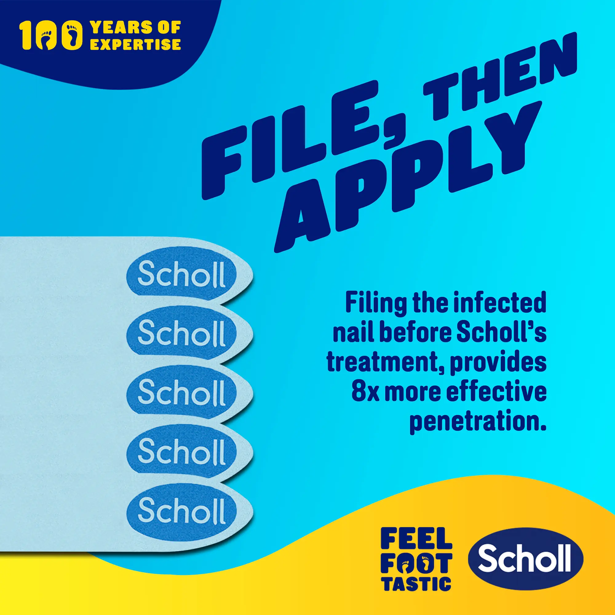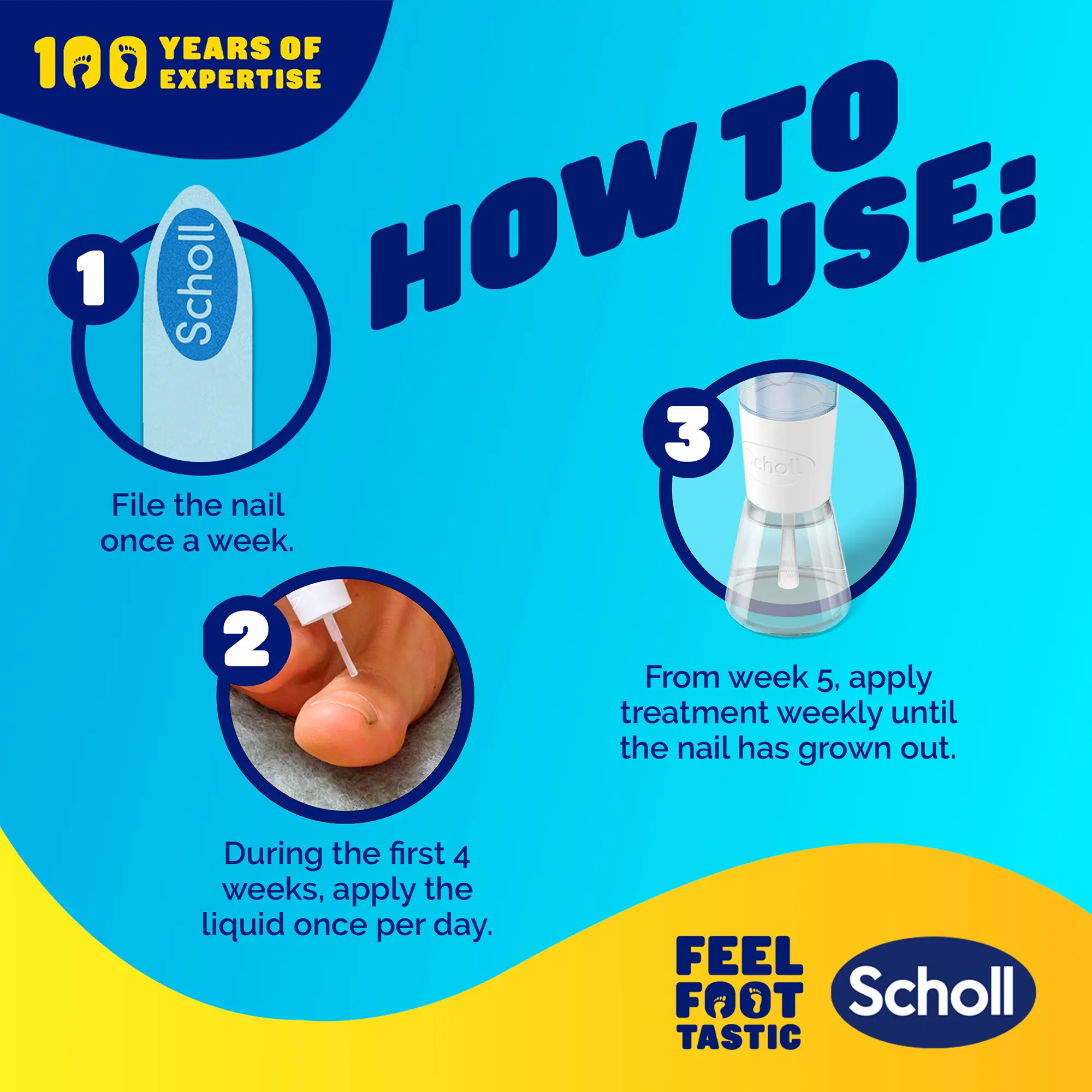 1. Apply the advanced liquid to the infected nail once a week for 9 months or until the discolouration has grown out.