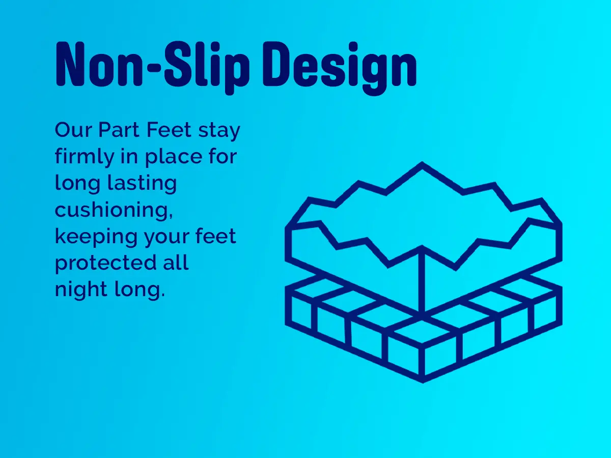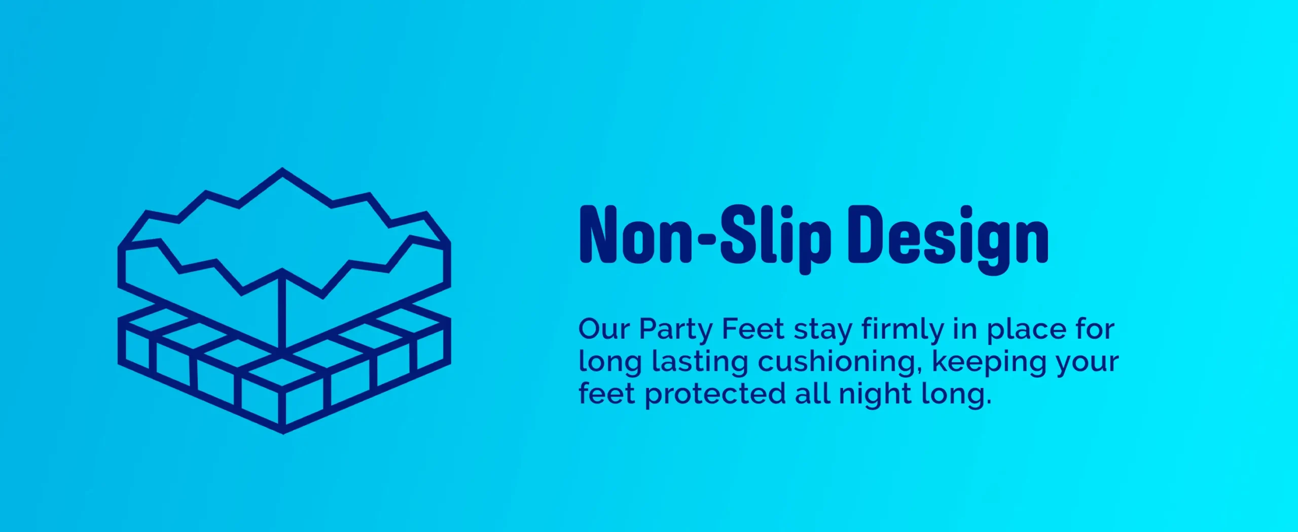 NON-SLIP TECHNOLOGY: Whether you’re partying with friends, sightseeing or shopping, Party Feet inserts have non-slip technology to stay firmly in place.