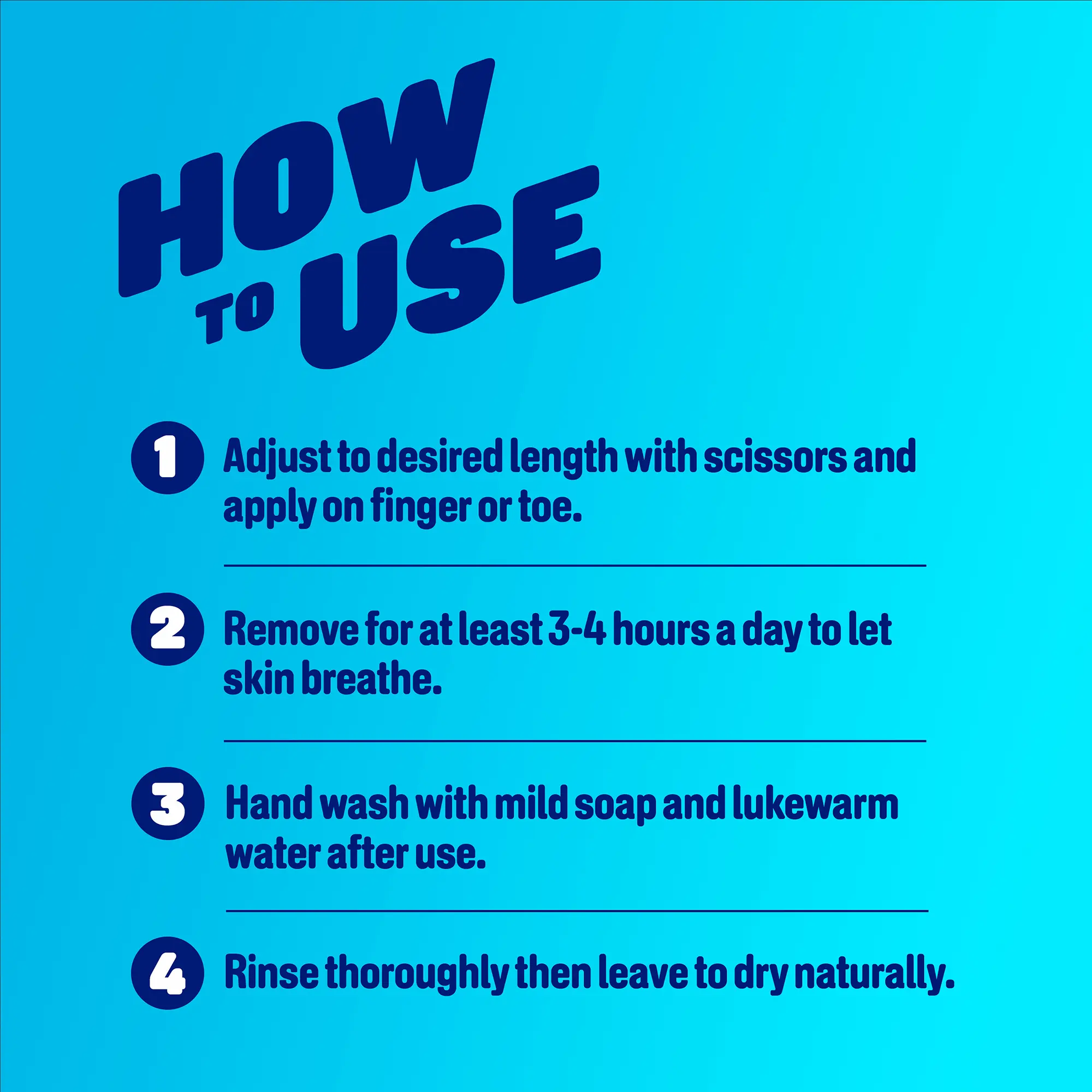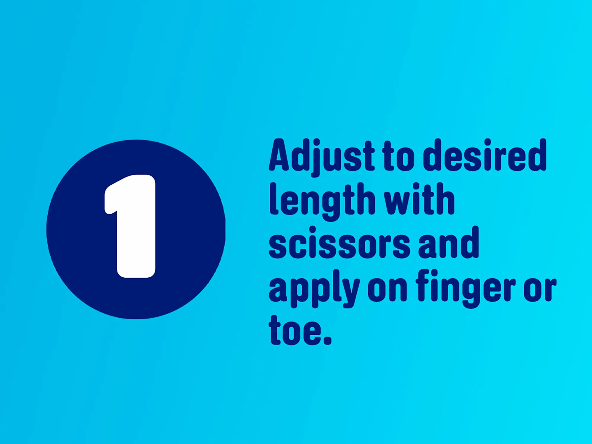 1. Adjust to desired length with scissors and apply on finger or toe.