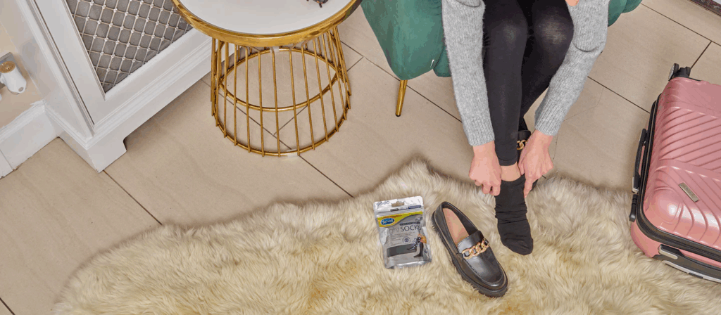 Feel Foot-tastic™ with Scholl Compression Flight Socks, now available in Black or Sheer.